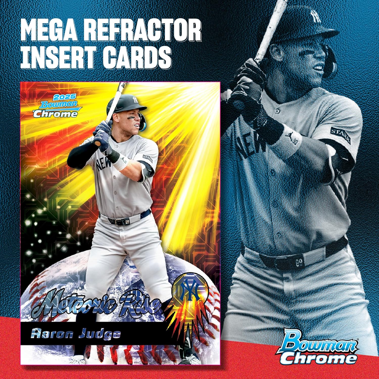 Celebrate the Future of Baseball in Chrome: Step into the hobby with the 2025 Bowman Chrome Baseball Mega Box, a factory-sealed release that blends the year’s top rookies, veterans, and prospects on the exclusive Mega Chrome pattern. Collect chrome baseball cards that spotlight stars like Shohei Ohtani and Aaron Judge alongside new MLB prospects like Josuar Gonzalez for a cornerstone addition to any baseball card collection