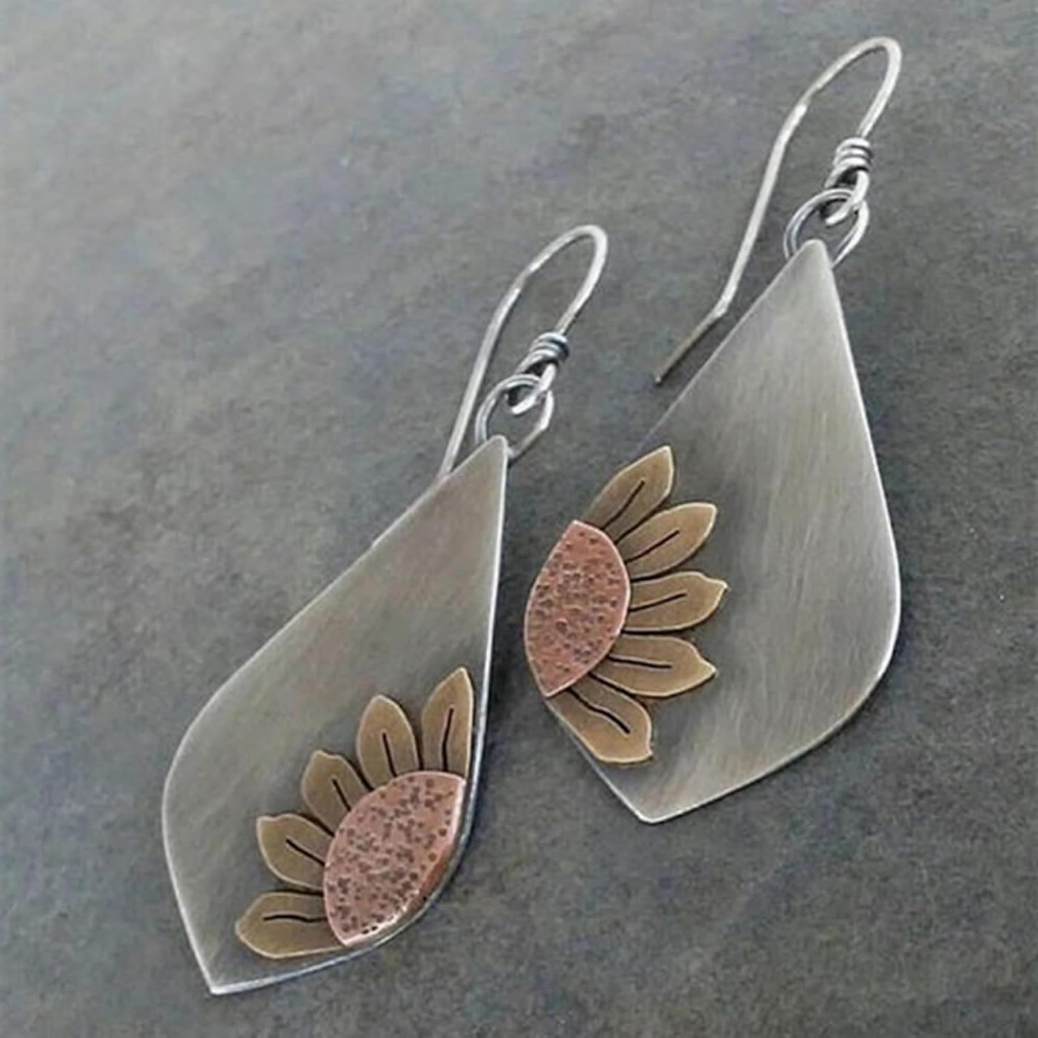 Boho Earrings, Statement Earrings, Teardrop Sunflower Earrings, Dangle Ethnic Earrings for Women, Handmade Bohemian Trendy Boho Vintage Jewelry