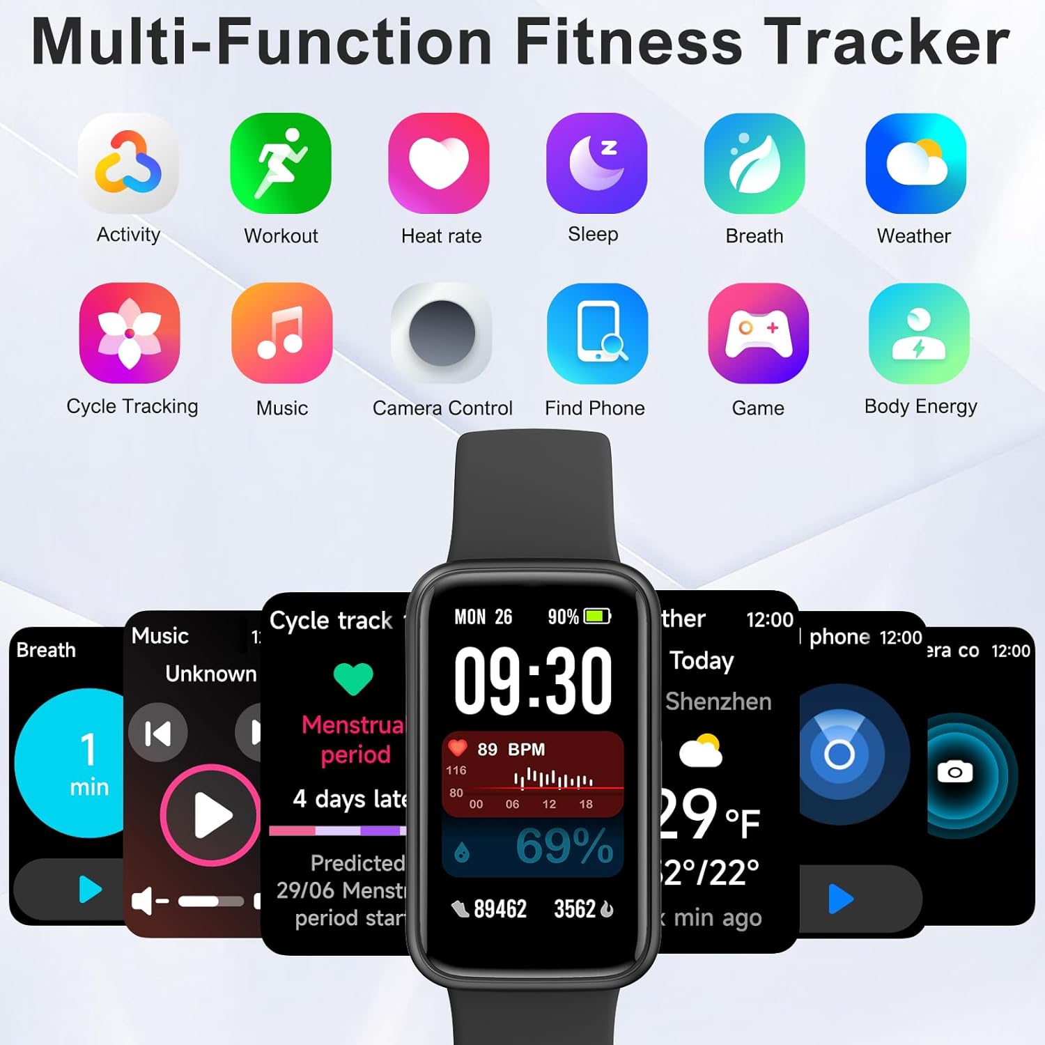 【Smart Assistant&More Functions】: Smart watch is packed with everyday tools to make your life easier. Get instant weather updates, control your music, set reminders to stay active, use the alarm clock, try breathing exercises to relax, and the Find Phone feature. All of these features are conveniently available on your fitness tracker watch, enhancing convenience to your daily routine.