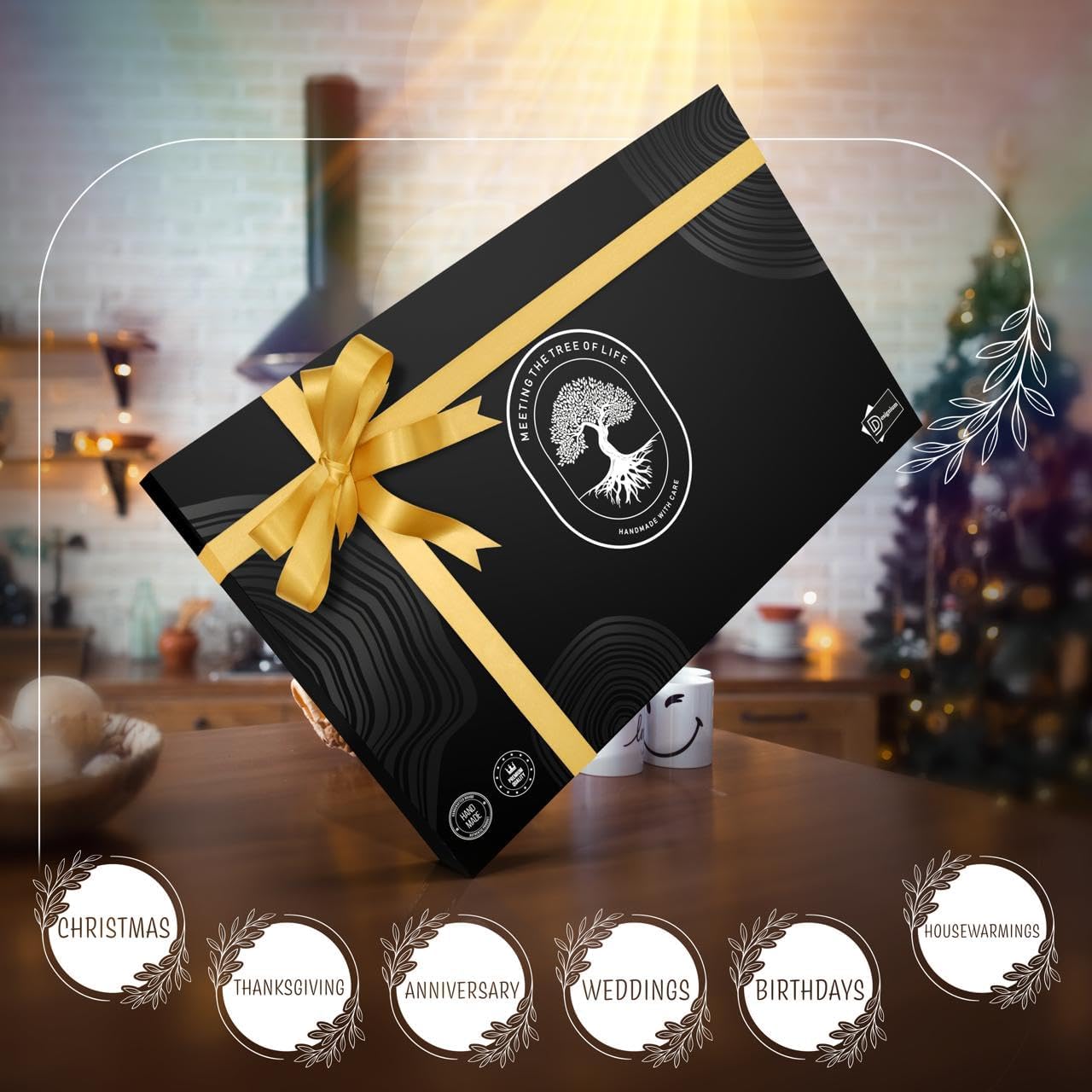 Stunning And Stylish Gift: This large wood cutting board mold adds a stunning touch to interior home and kitchen decoration. Kitchen cutting board makes the most memorable house warming gifts new home. Our bar cutting boards for charcuterie cheese boards for sushi is beautiful housewarming gift for women, wedding registry items, couples gifts, bridal shower gift, weddings, anniversaries, Christmas, Thanksgiving, birthdays and mother days gifts. This tablas de madera para decorar comes in its own exquisite well-packed black gift box.