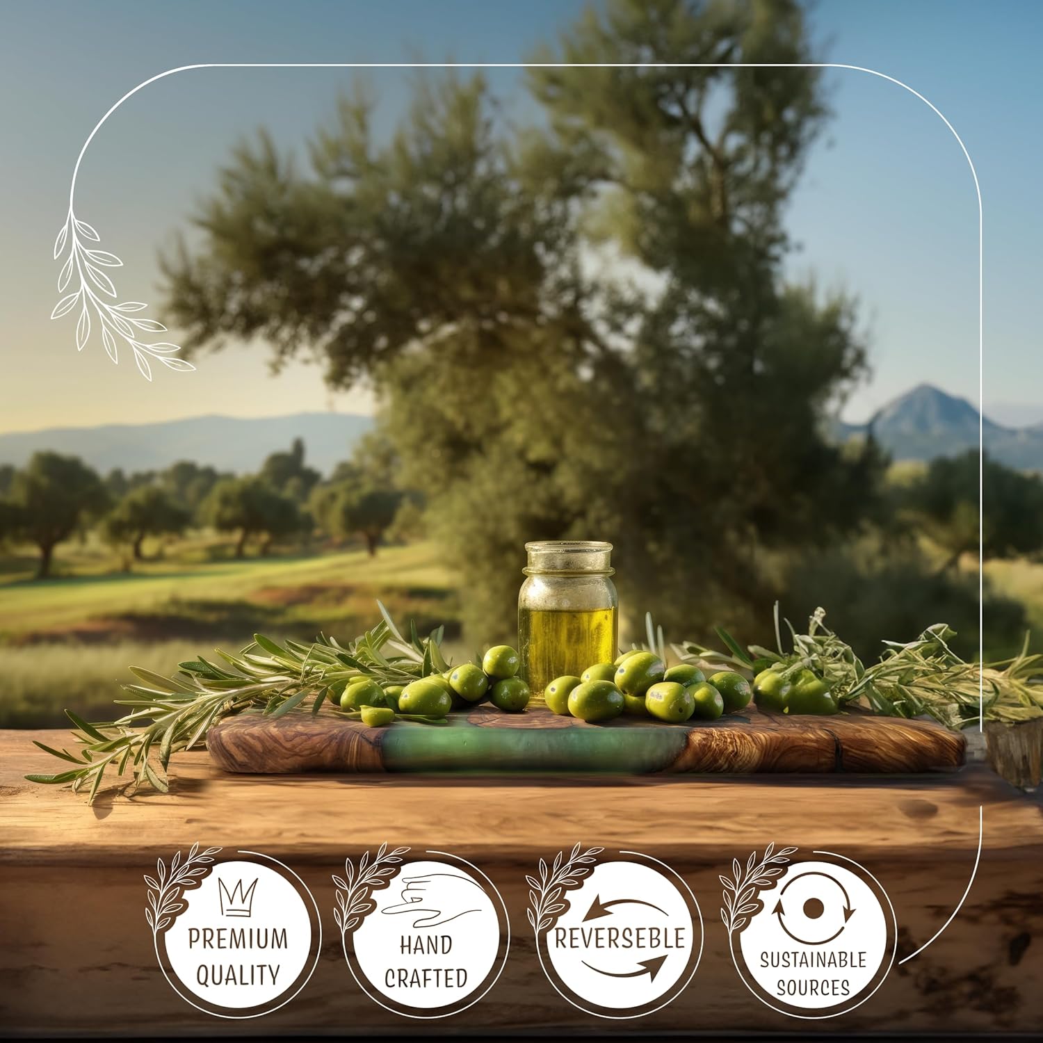 Versatile And Elegant: You may use both sides for serving cheese, fruit and meat as an elegant and luxury olive wood charcuterie board or resin cutting board. The natural beauty of the olive grain makes these cheese charcuterie boards multifunctional for wine plates, hors d’oeuvres. Olive wood kitchen serving platter is gracious for serving, steak, pizza, fruits, sushi, bread and other appetizers. Our handmade large wooden cutting boards for kitchen make a heart-warming centrepiece on any dining table.