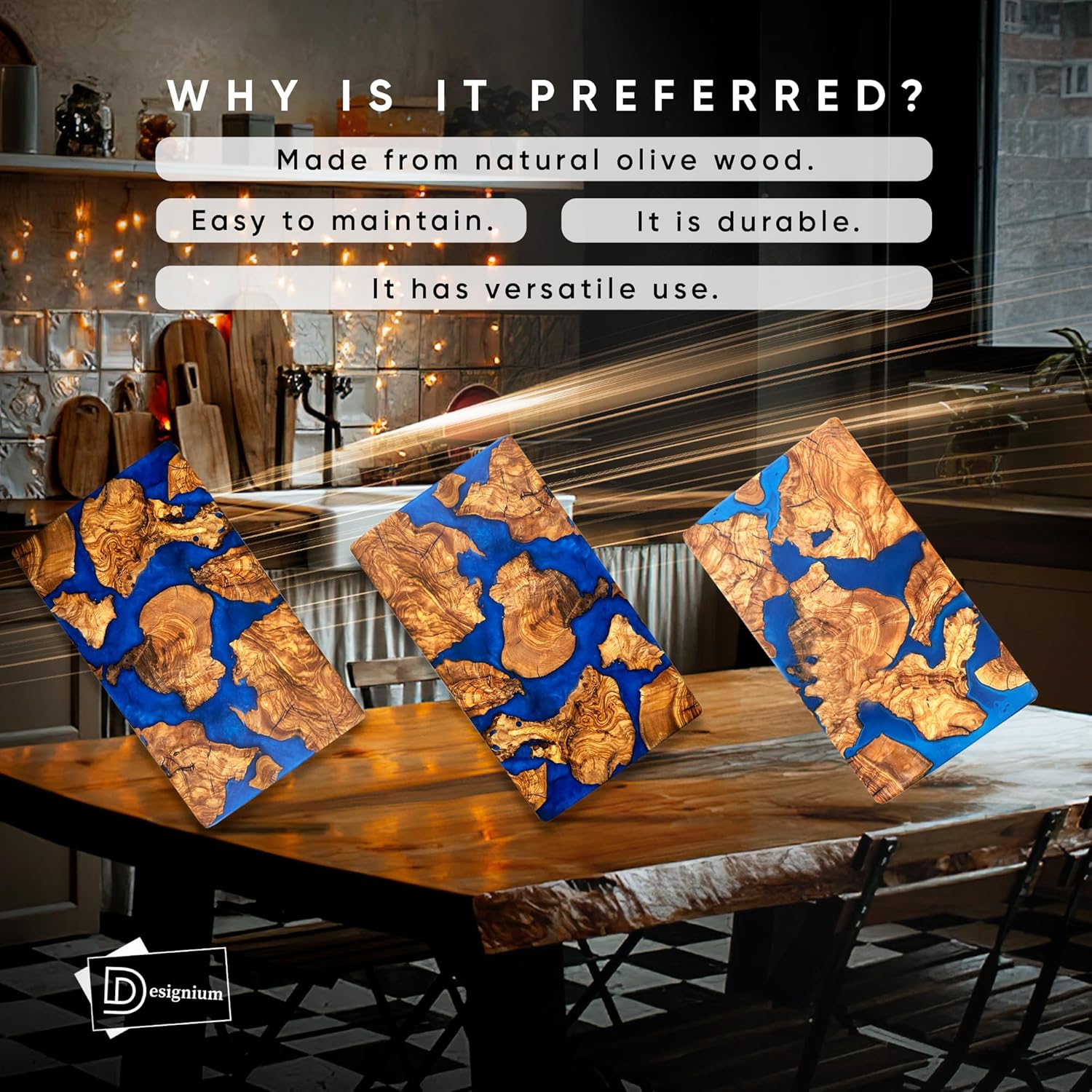 Designium nature wood cutting boards for kitchen with its beautiful rustic style and color are not only for your kitchen but also a stylish serving practical item for outdoor events.