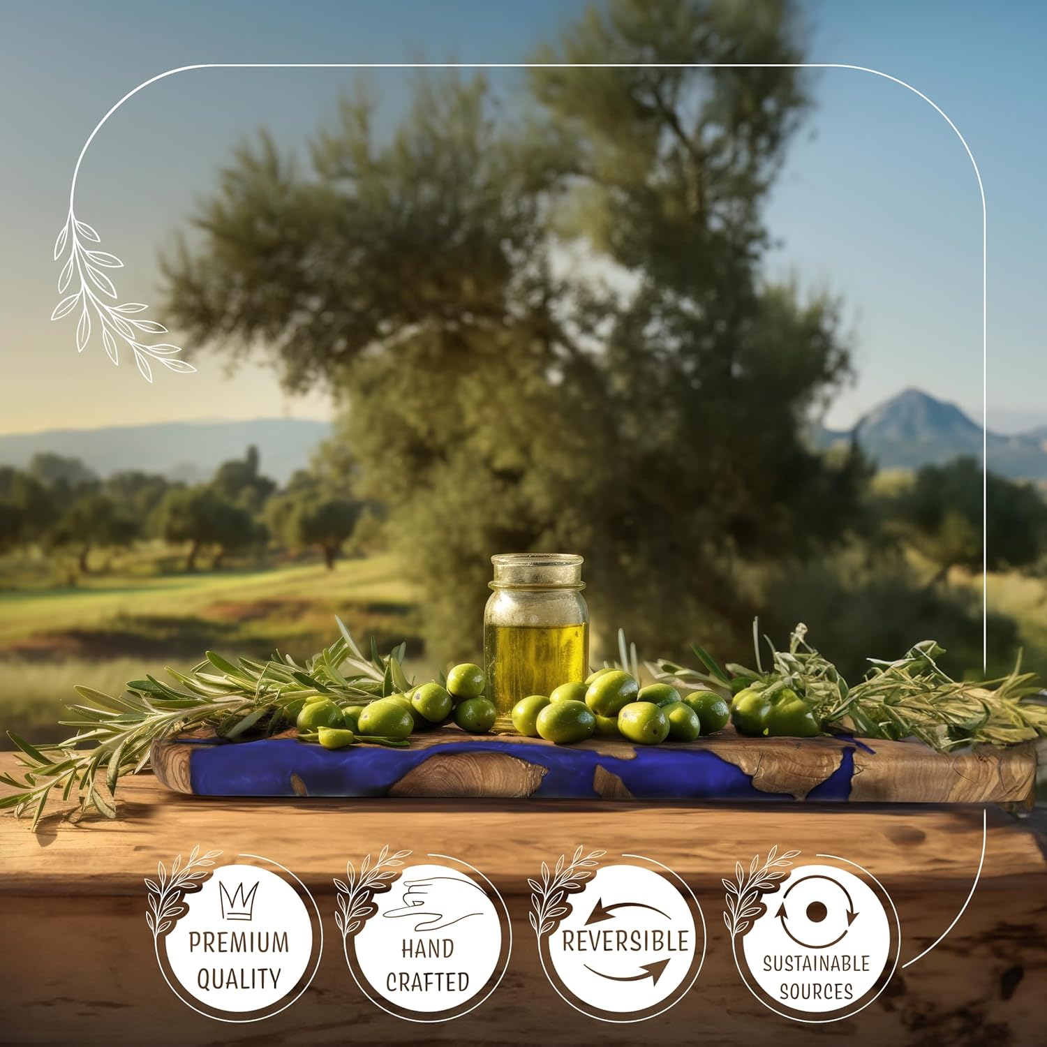 Handcrafted boldly grained, sustainably sourced olivewood cheese platter accented with food grade resin epoxy. Each organically shaped, handcrafted charcuterie resin olive wood small cutting boards for kitchen boards exhibit unique characteristics and created with care, expertise and passion.