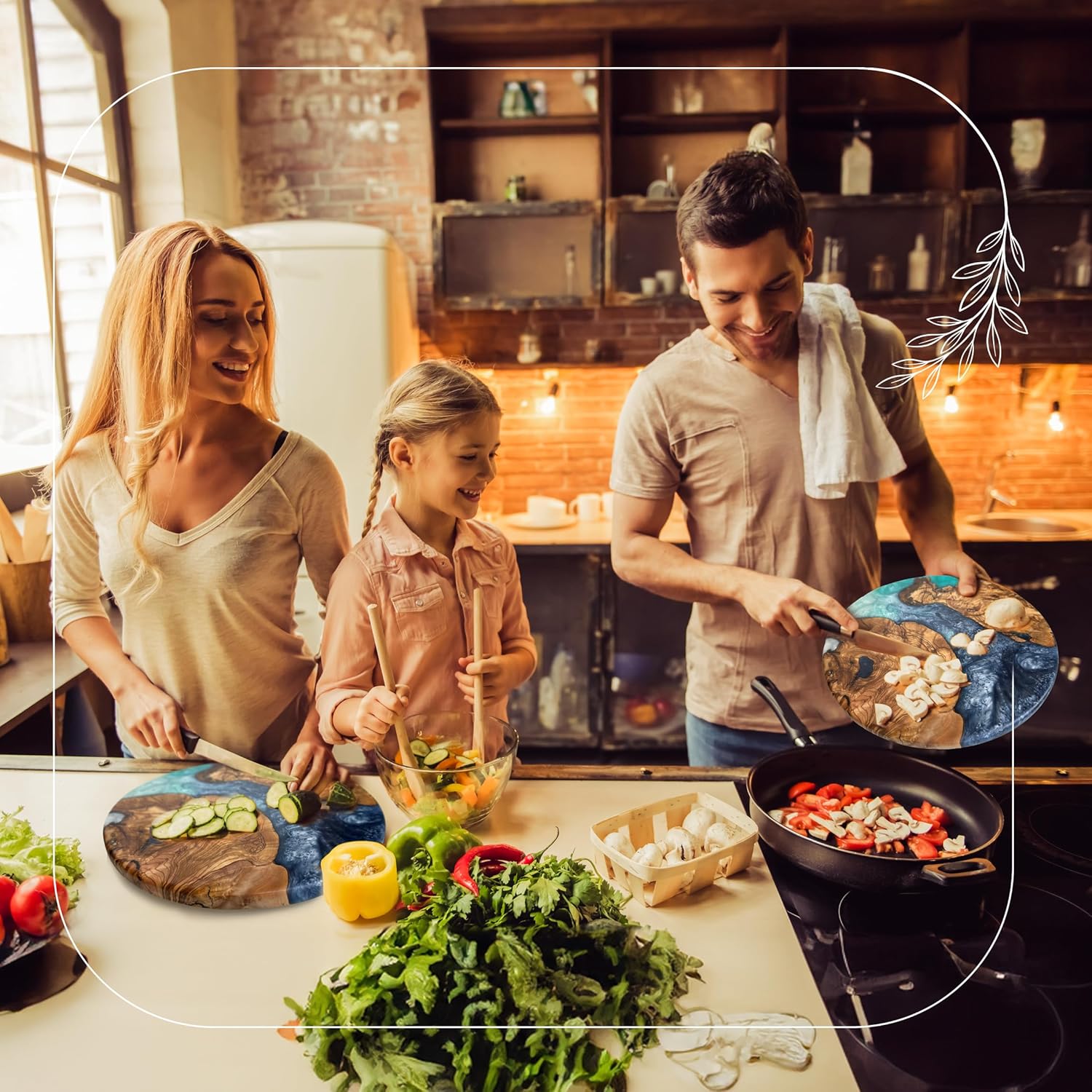 STYLISH PRESENTATION: The natural wood grain and round shape create an elegant and rustic aesthetic for any gathering. Our resin handmade large round wooden cutting boards for kitchen make a heart-warming centrepiece on any dining table.