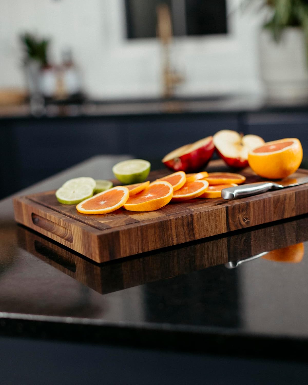 5. What kind of finish is used on the board? This cutting board is finished with 100% food-safe mineral oil, preserving the natural walnut grain while protecting against moisture.