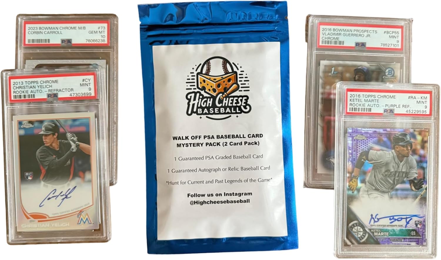 High Cheese Baseball Walk Off Mystery Pack – 2 Cards, 1 PSA Graded & 1 Autograph/Relic Ungraded