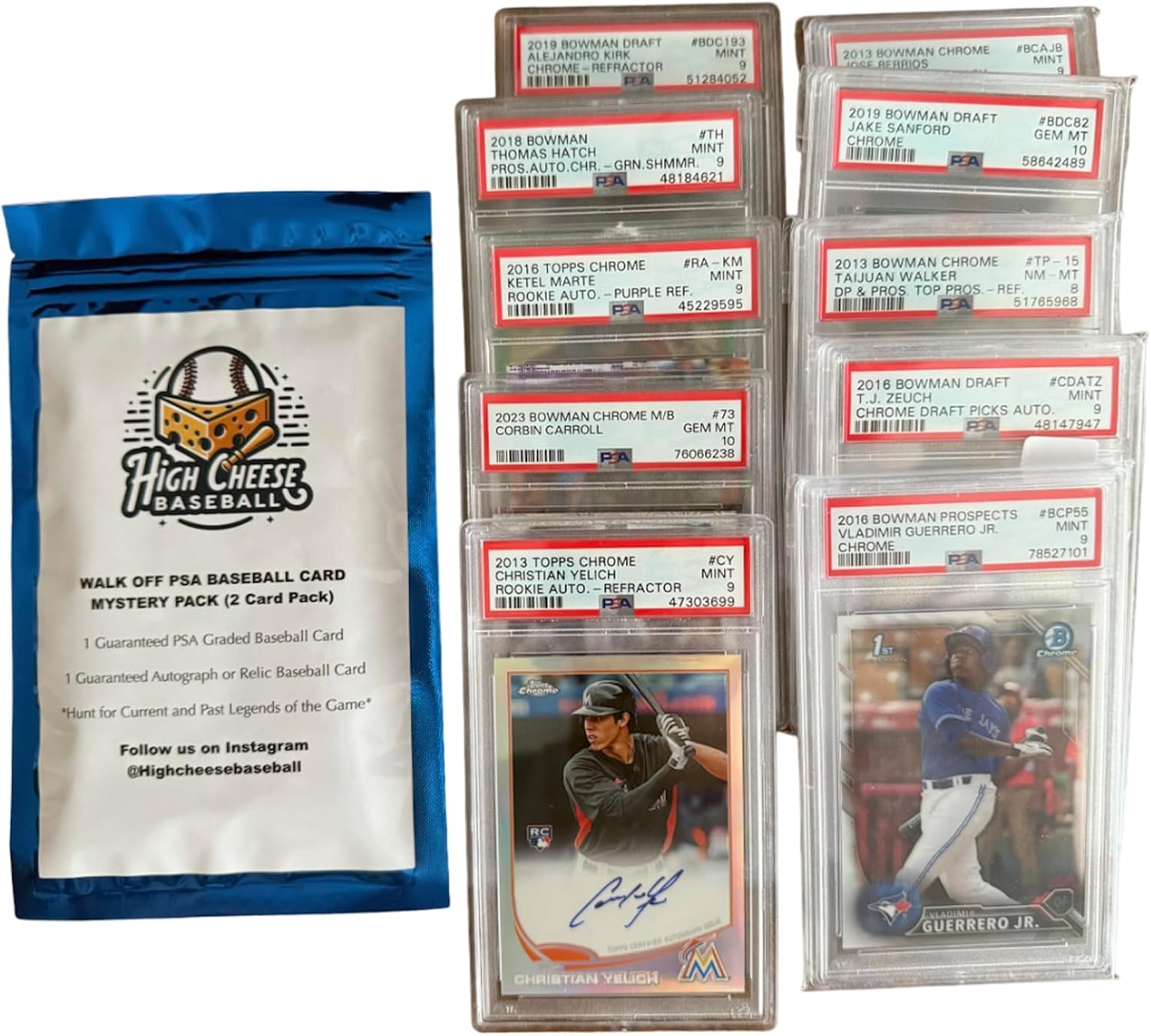 High Cheese Baseball Walk Off Mystery Pack – 2 Cards, 1 PSA Graded & 1 Autograph/Relic Ungraded
