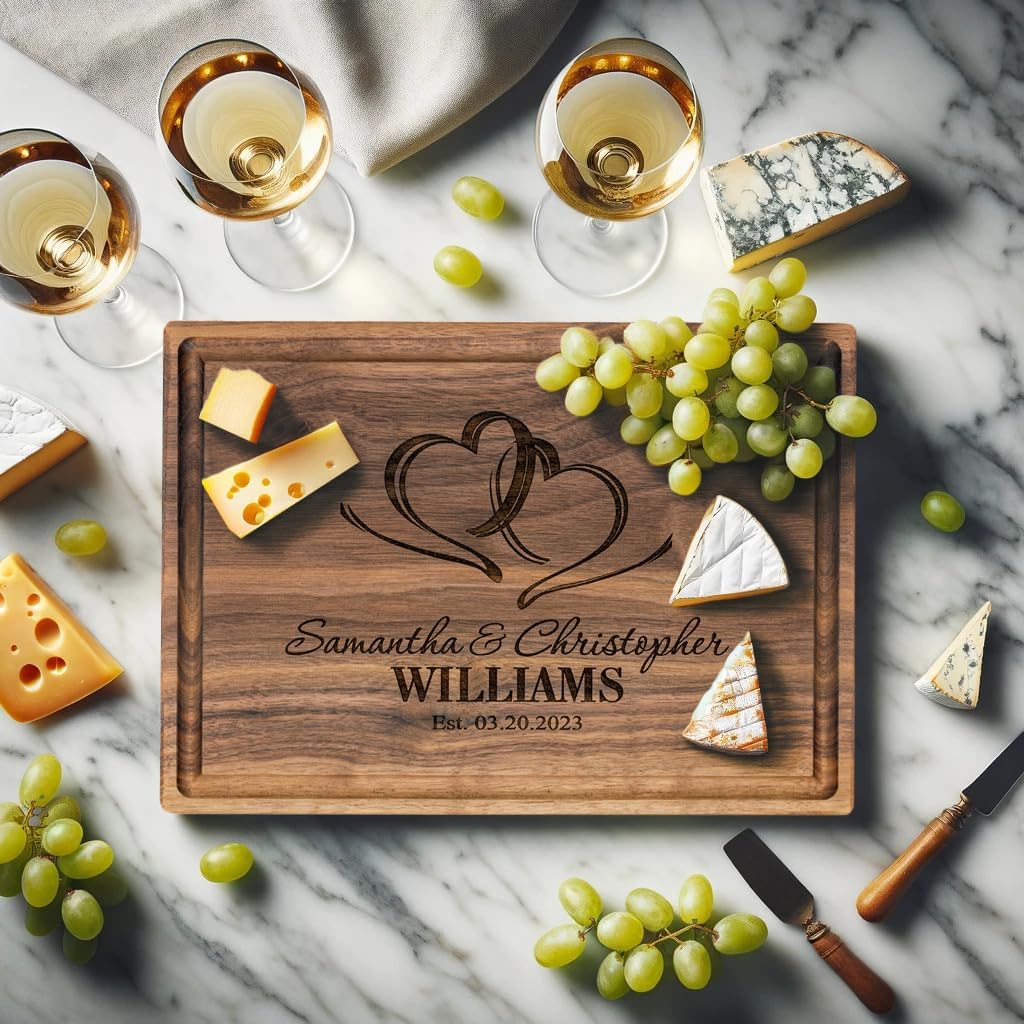 ❤️ Made With Love: Our customizable boards from Wedding Gift Boutique come in various sizes and wood colors. They are produced by a small, family-owned business, renowned for their quality and style, distinguishing them from other custom cutting boards.