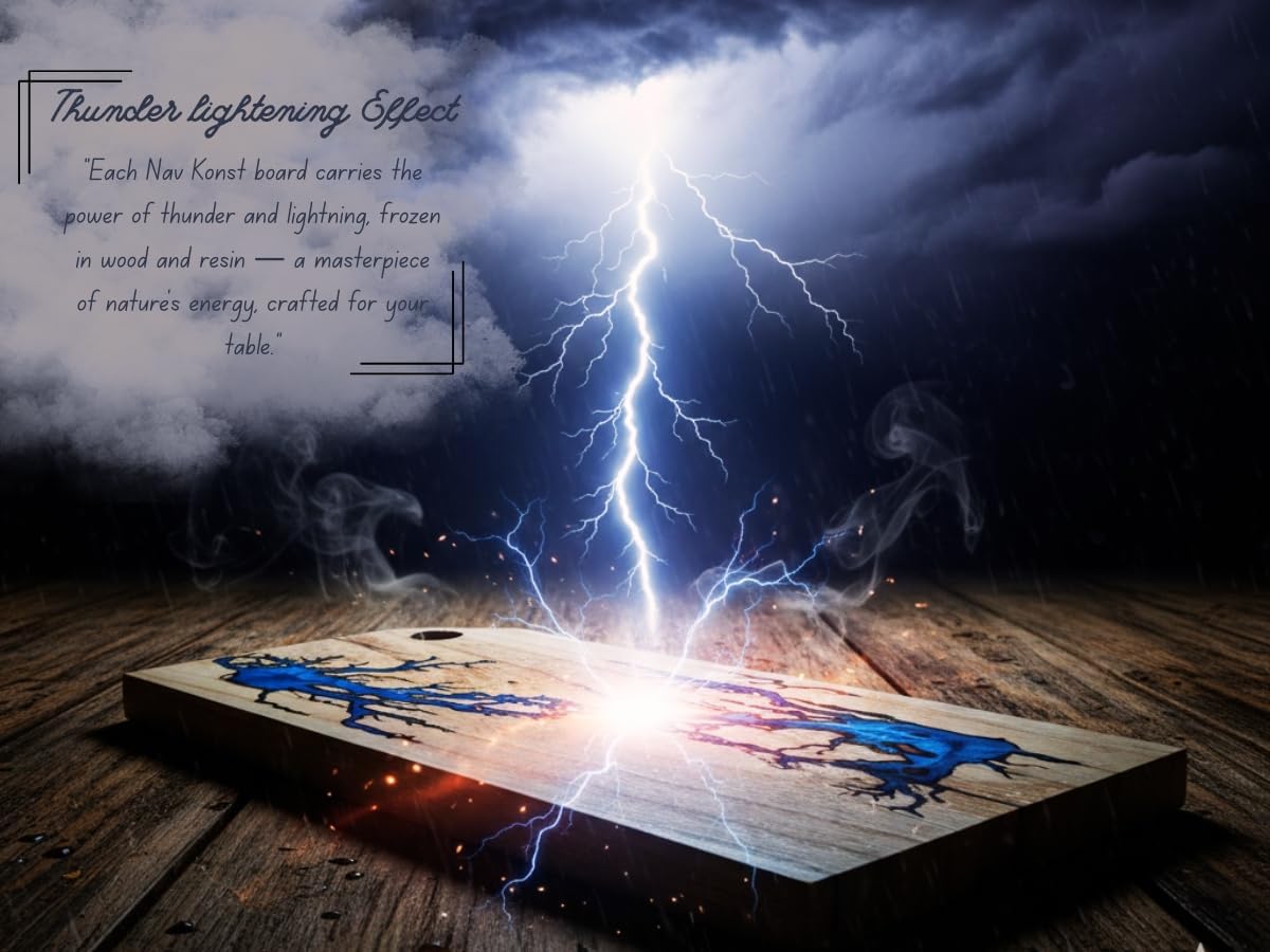 We use fractal burning to carve lightning patterns in wood, then inlay them with colorful resin — making every piece a one-of-a-kind work of art.