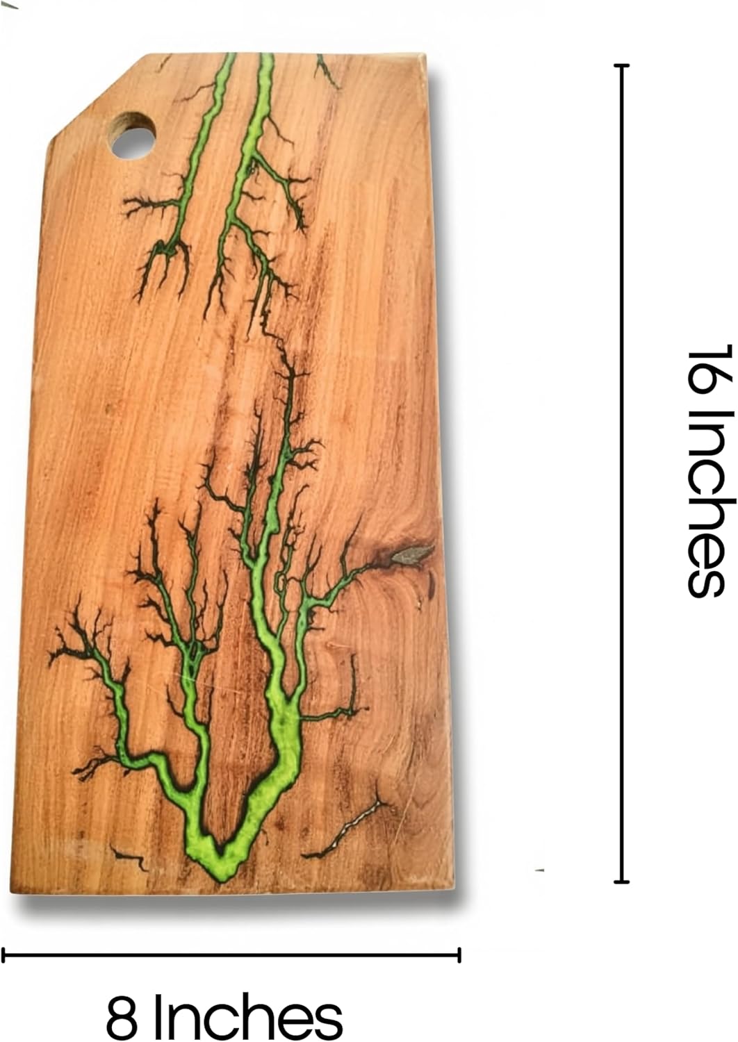 Resin Charcuterie & Cutting Board – 16″ × 8″ Handmade Acacia Wood Serving cheese Platter with Green Epoxy Inlay Designed Cutting Board Kitchenware Gift
