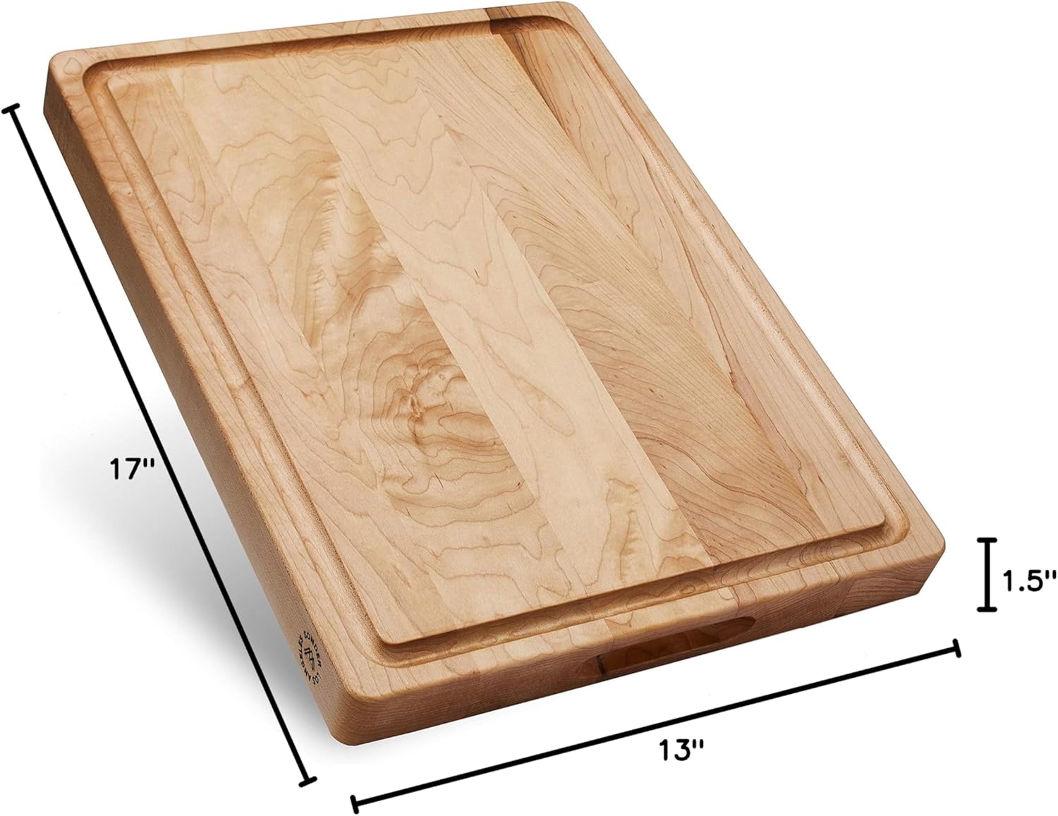 DURABLE EDGE GRAIN MAPLE – Maple is the industry standard when it comes to wood cutting boards. It is a hard, closed grain wood, meaning it’s durable and able to resist moisture. The wood is hard enough to allow for clean cuts, but still soft enough to maintain a knife’s edge. Finished safely. Free of BPA, phthalates, and formaldehyde.