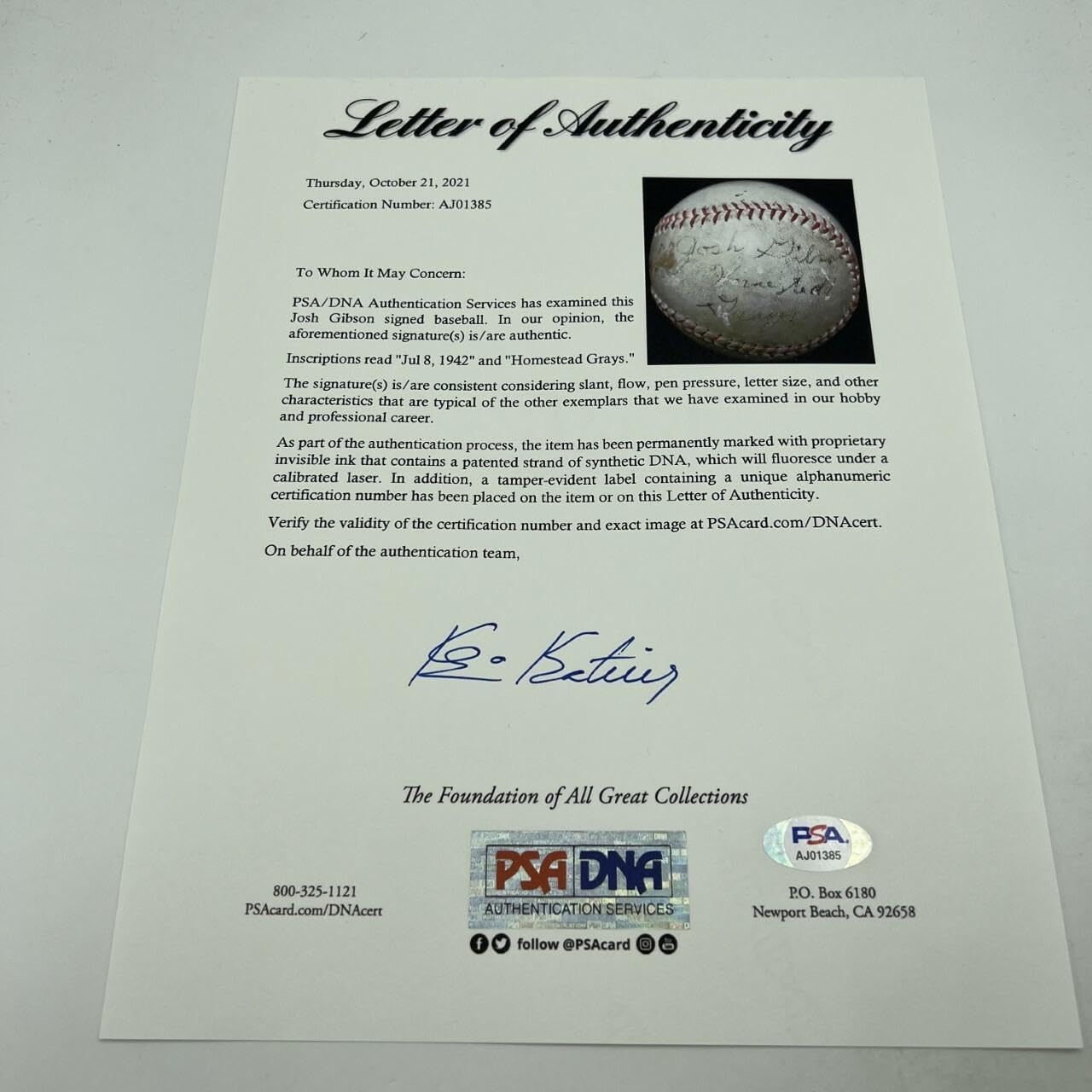 The Only Josh Gibson Single Signed Baseball On Earth PSA DNA & JSA COA . If a product is unsigned or non game-used, a hologram will not be included. Josh Gibson memorabilia. Pittsburgh Pirates memorabilia.
