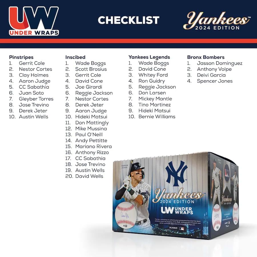 New York Yankees Under Wraps Baseball features four categories: Pinstripes, Inscribed, Yankees Legends, Bronx Bombers