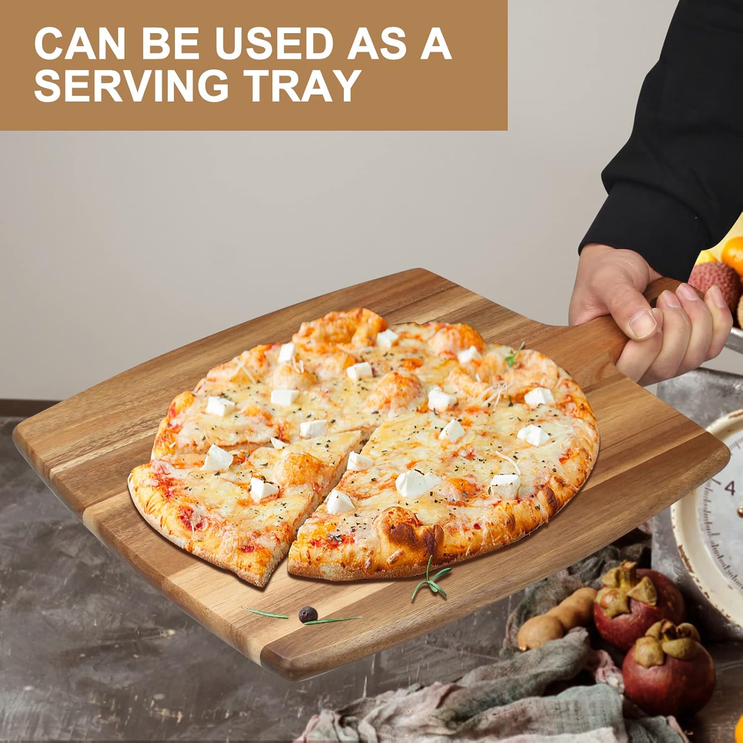 17″x13″ Large Acacia Wood Cutting Board with Handle Big Wooden Charcuterie Boards Butcher Block Meat Cutting Boards for Kitchen Decor Bread Cheese Serving Platter Thick Teak Chopping Board Food Tray