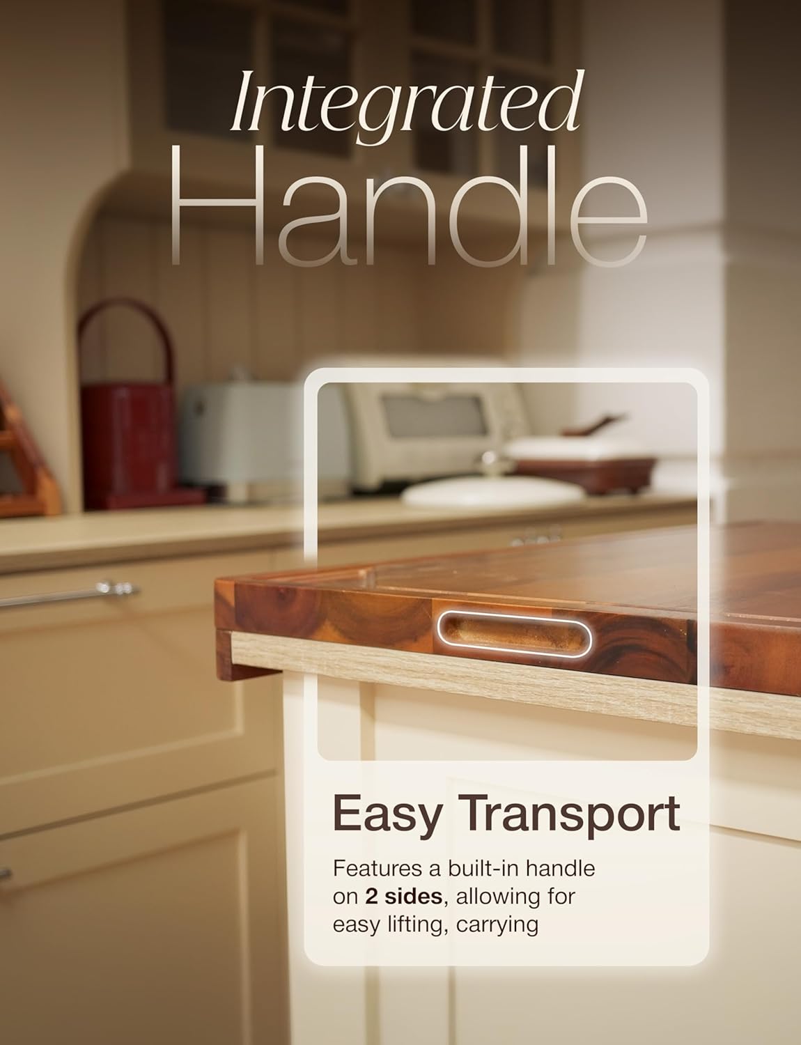 Acacia Wood Cutting Board and Chopping Board with Handle for Meat, Cheese Board, Vegetables, Bread, and Charcuterie Board – Wooden Serving Board for Kitchen, Dining Room (24″ x 18″)