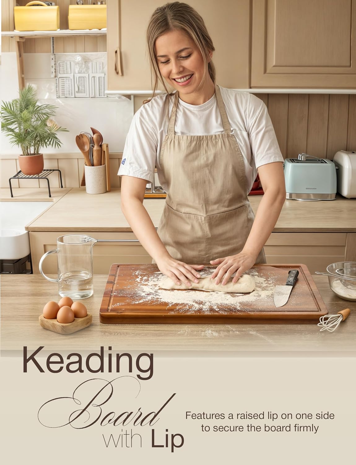 Versatile 2-in-1 Design: This acacia kneading board doubles as a cutting and chopping board, making it a multifunctional kitchen essential for rolling dough, kneading bread, and preparing ingredients like vegetables, meats, and cheese