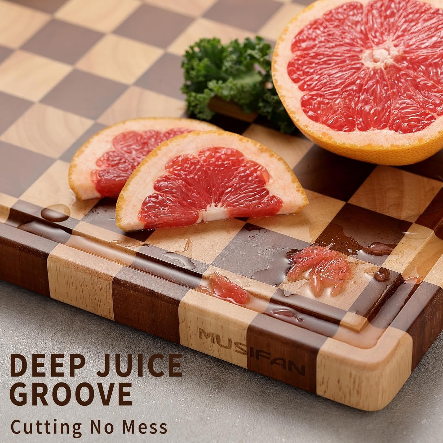 SPACIOUS & MULTIPURPOSE :The large wooden cutting board provides plenty of room for meal prep, doubling as a stylish serving tray for cheeses, charcuterie, or bread.