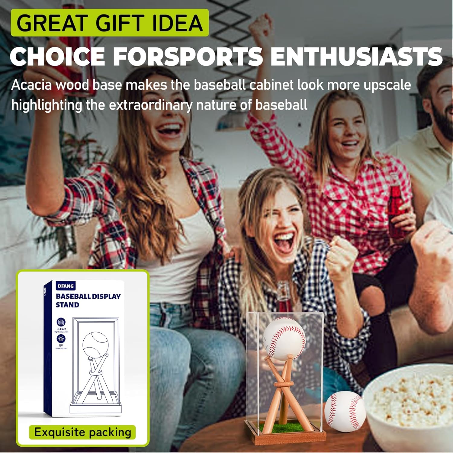 Baseball Display Case with Stand Holder, Wooden Base for Balls, UV Protected Acrylic Boxes for Display, Autographed/Memorabilia Signed Baseball Clear Case Cube
