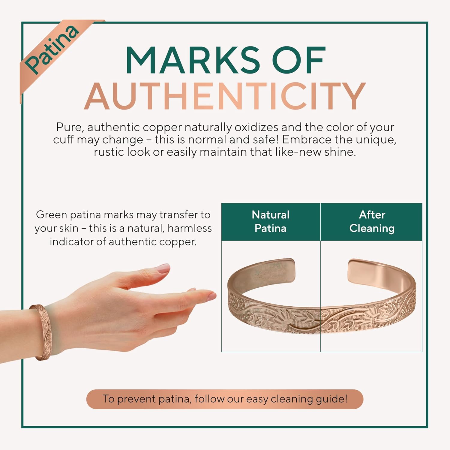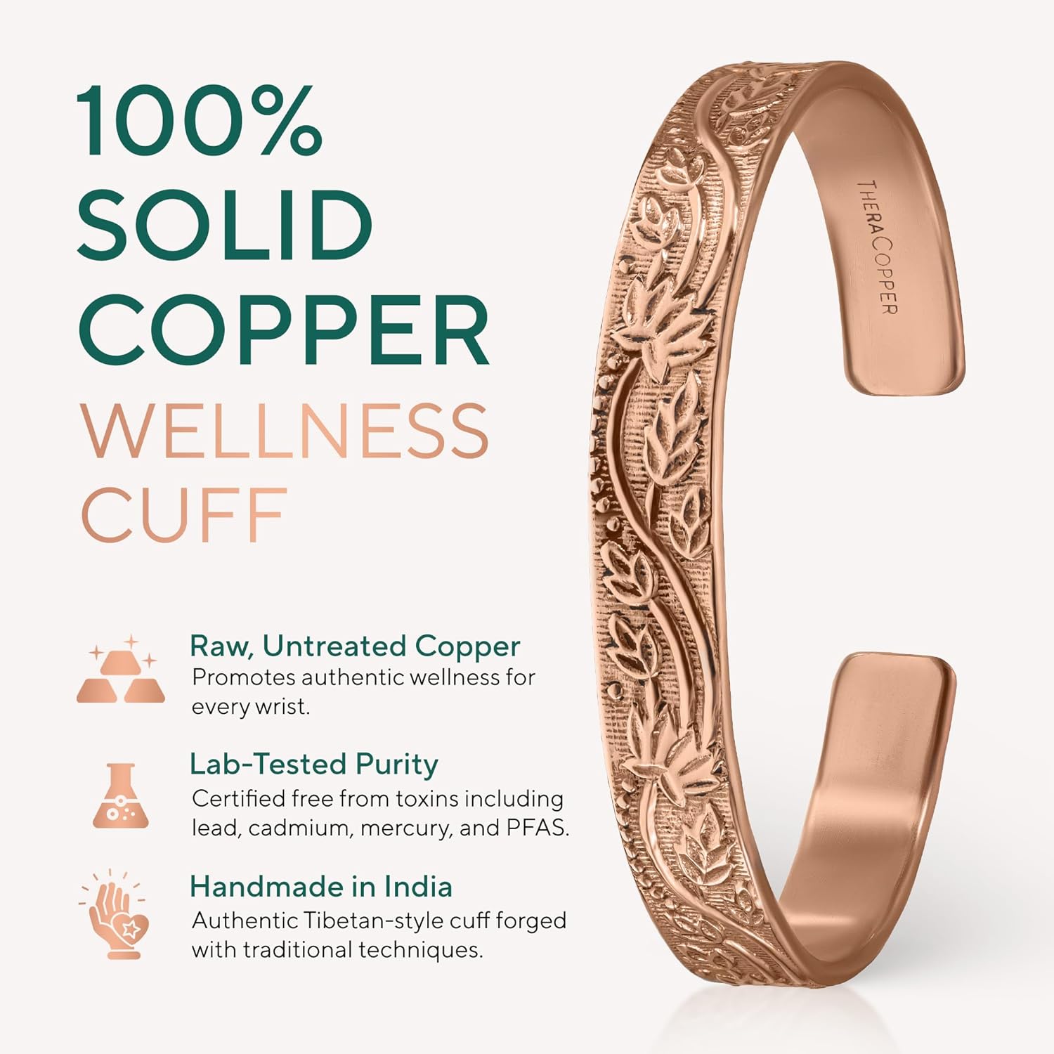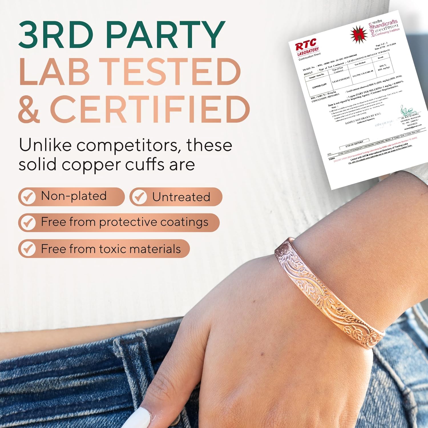 Copper Bracelet for Men & Women — 100% Pure Copper Bracelets — Raw, Solid & Uncoated Authentic Handmade Tibetan Bracelet Cuff Bangles