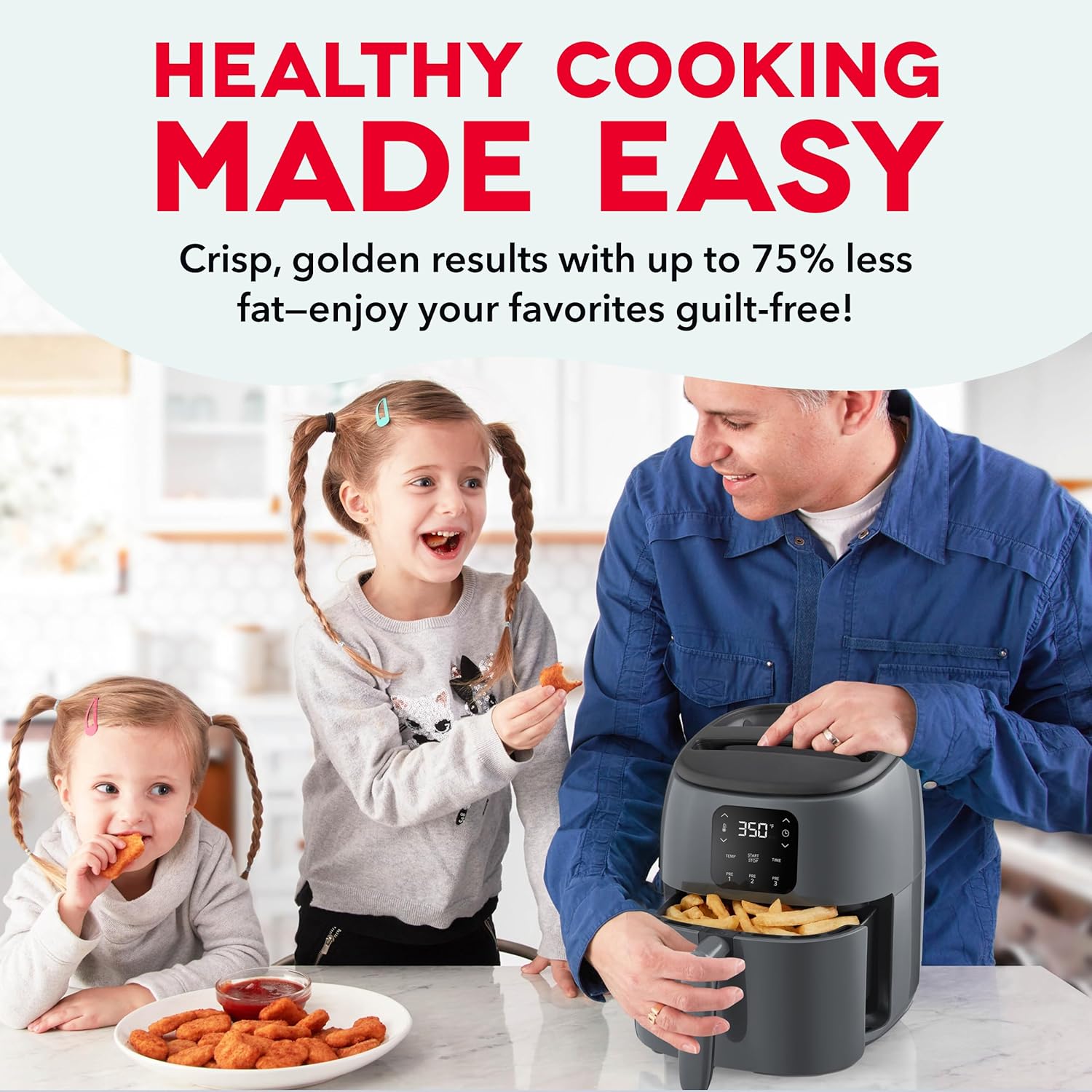 DASH Tasti-Crisp™ Electric Air Fryer Oven, 2.6 Qt., Grey – Compact Air Fryer for Healthier Food in Minutes, Ideal for Small Spaces – Auto Shut Off, Digital, 1000-Watt