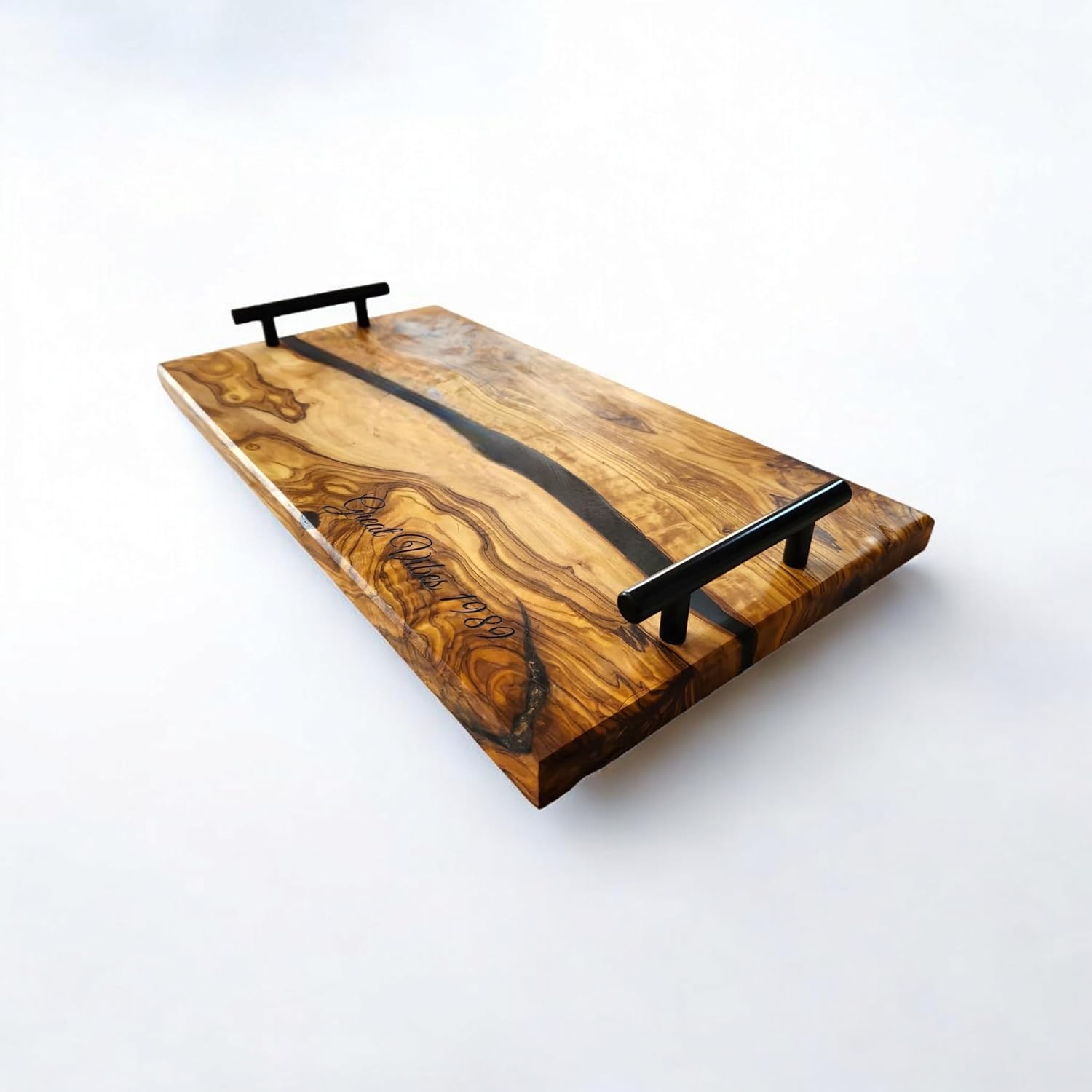 DYARI Cutting Board – 100% Natural Olive Wood Cutting Board – Premium Eco-Friendly Tunisian Rustic Serving Board – Laser Engraved Live Edge Charcuterie Board (Epoxy Resin)