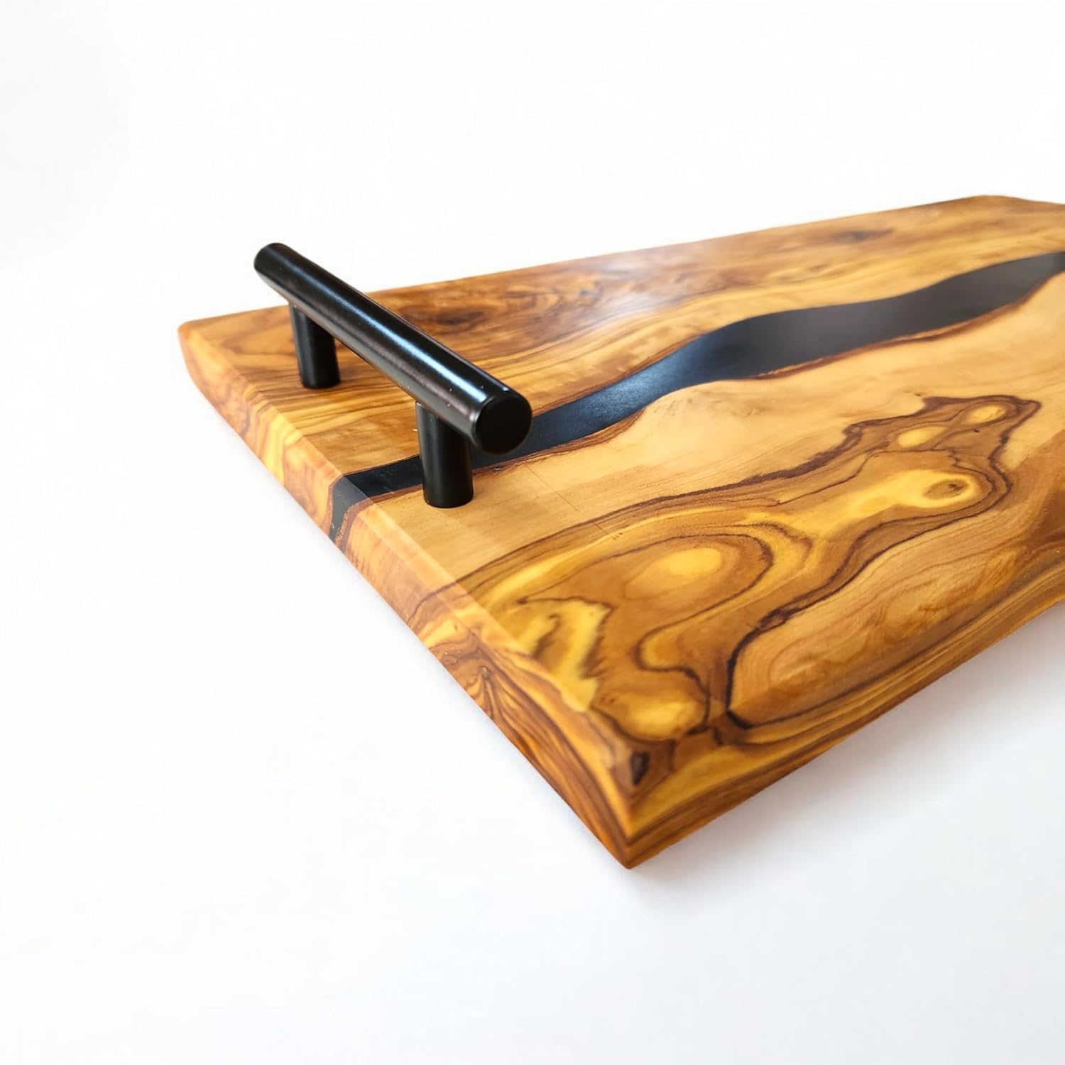 DYARI Cutting Board – 100% Natural Olive Wood Cutting Board – Premium Eco-Friendly Tunisian Rustic Serving Board – Laser Engraved Live Edge Charcuterie Board (Epoxy Resin)