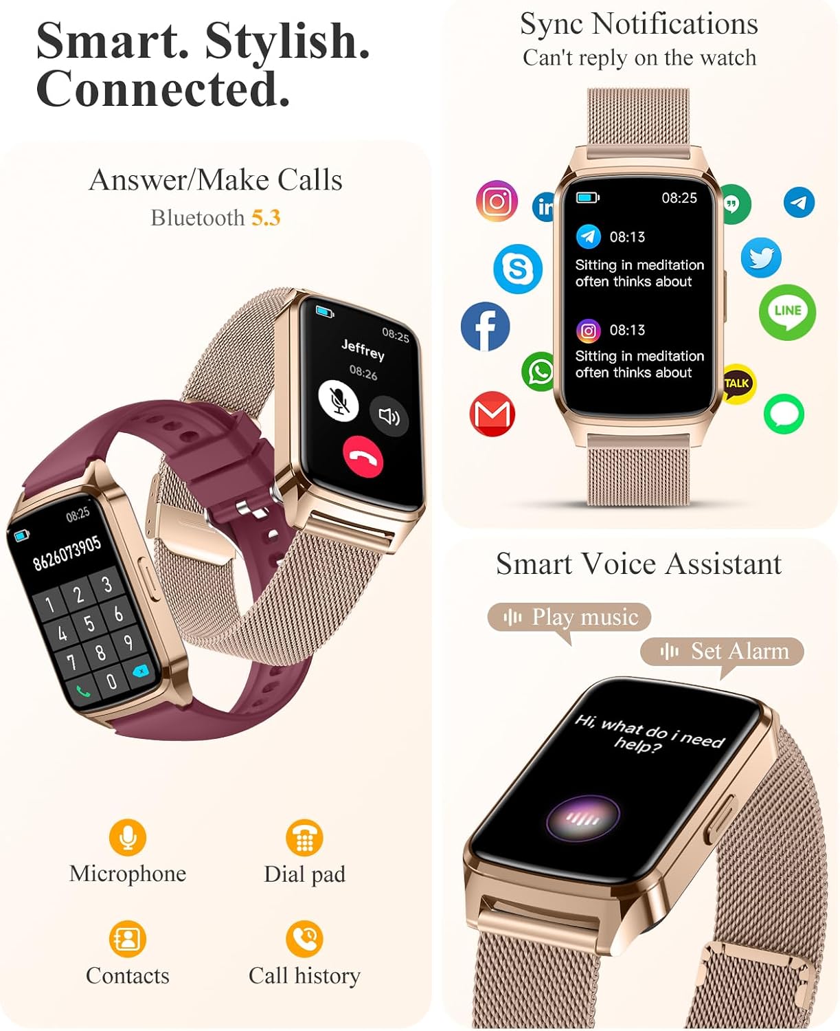 Vivid HD Display & Custom Faces: Featuring a 1.57-inch full-color HD display, this fitness watch for women ensures sharp visuals and smooth operation. Personalize your smartwatch by choosing from over 120 stylish watch faces or personal photos, versatile enough to appeal to both women’s fitness watches and broader user preferences