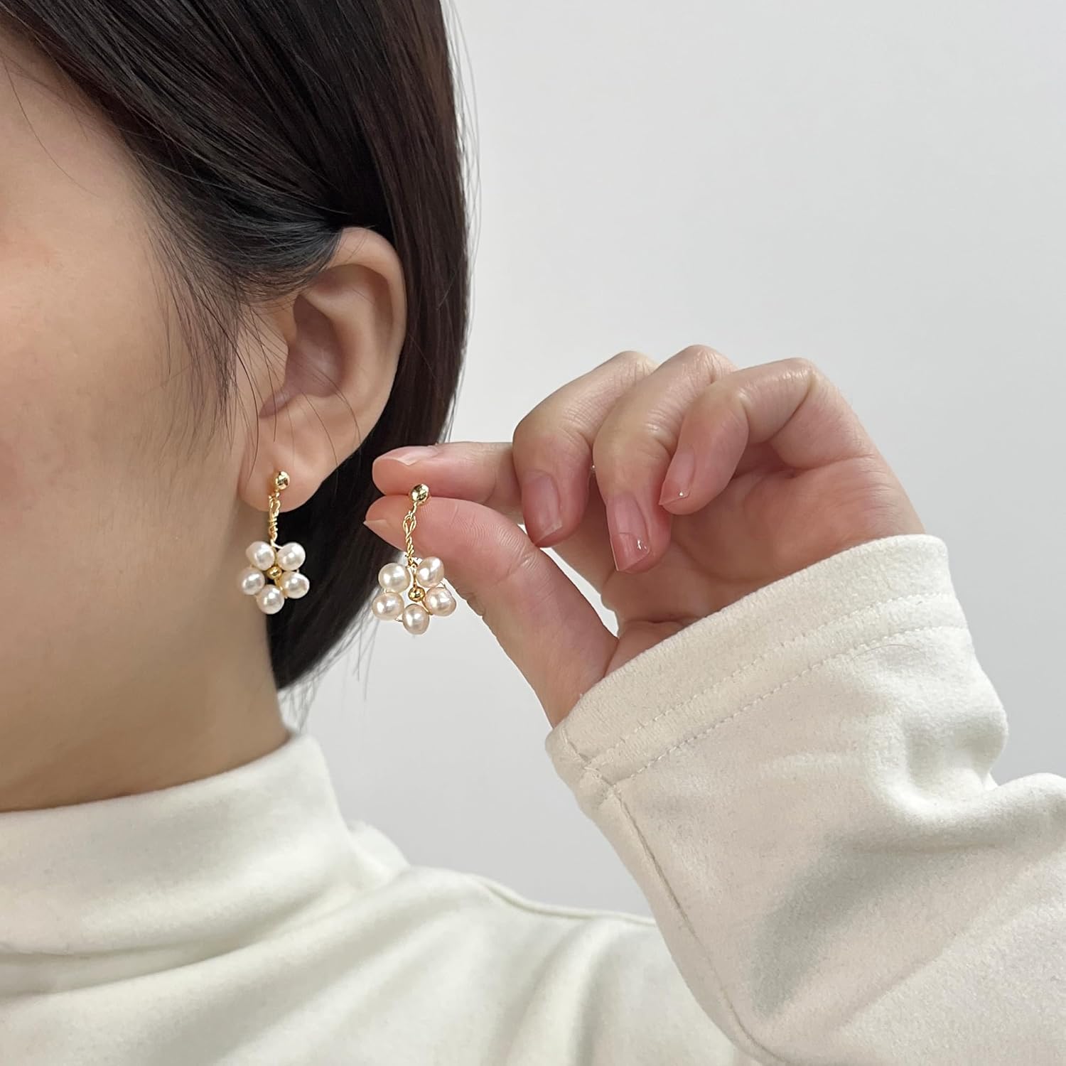 This is a pair of pearl dangle earrings made from 14K gold plated copper wire, handmade with love by our very experienced artisansPearls earring is specially designed as a flower pattern with 5 cultured freshwater pearls base which looks classy