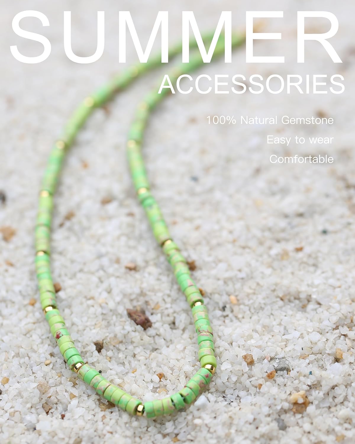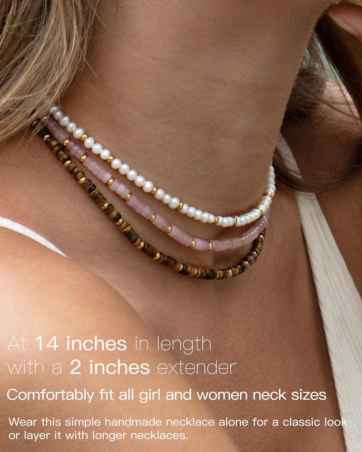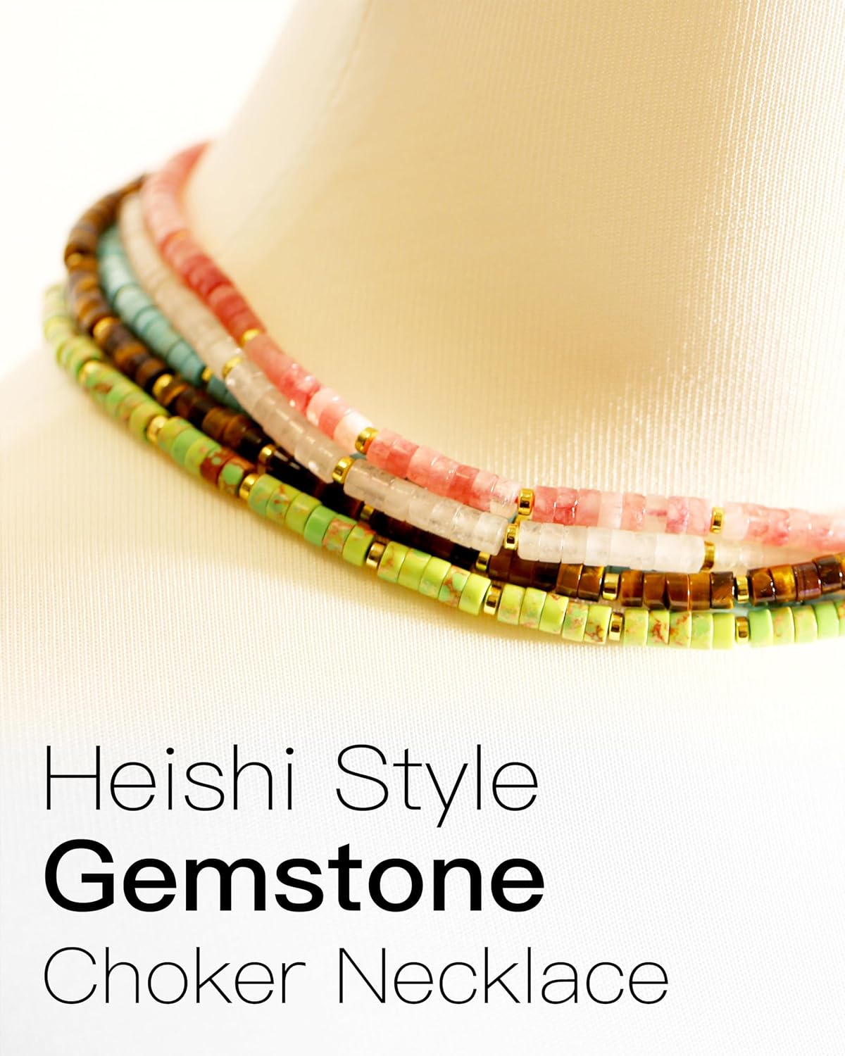 Heishi Style Gemstones/Natural Pearls Beaded Choker Necklace for Women, Handmade Jewelry Gifts for Her