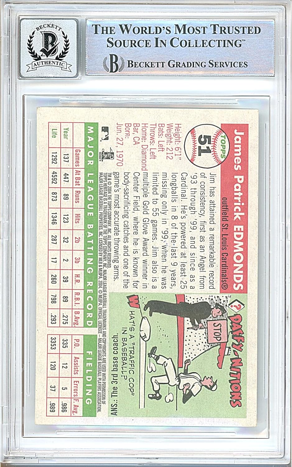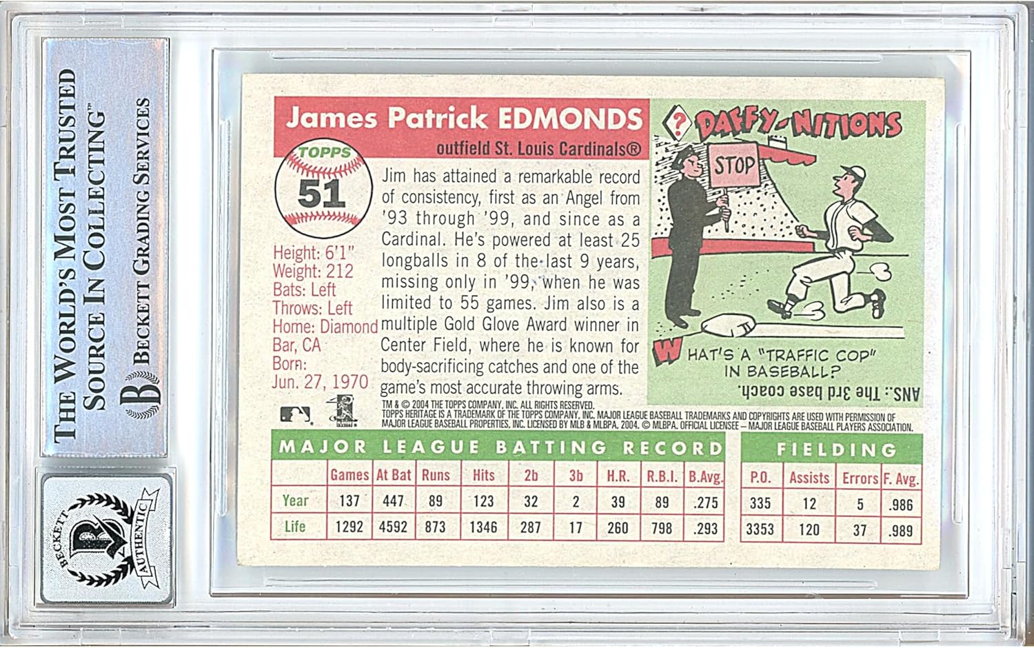 Jim Edmonds Signed 2004 Topps Heritage Card #246, Beckett Authentic Autograph BGS Auto-10 Graded Slab, St Louis Cardinals Autographed Baseball Memorabilia