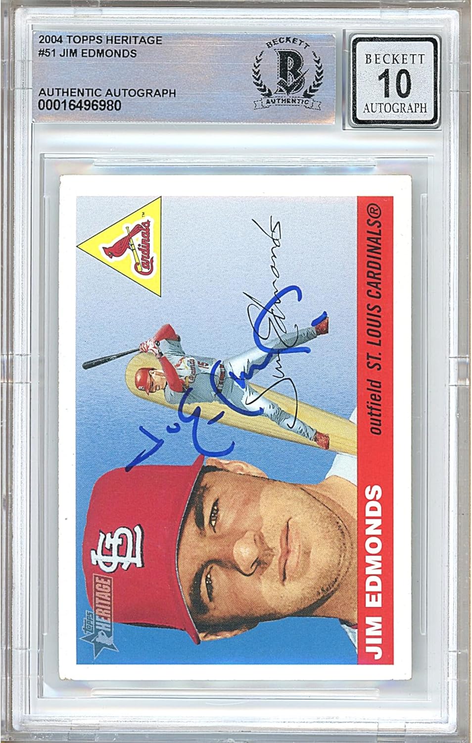 Jim Edmonds Signed 2004 Topps Heritage Card #246, Beckett Authentic Autograph BGS Auto-10 Graded Slab, St Louis Cardinals Autographed Baseball Memorabilia