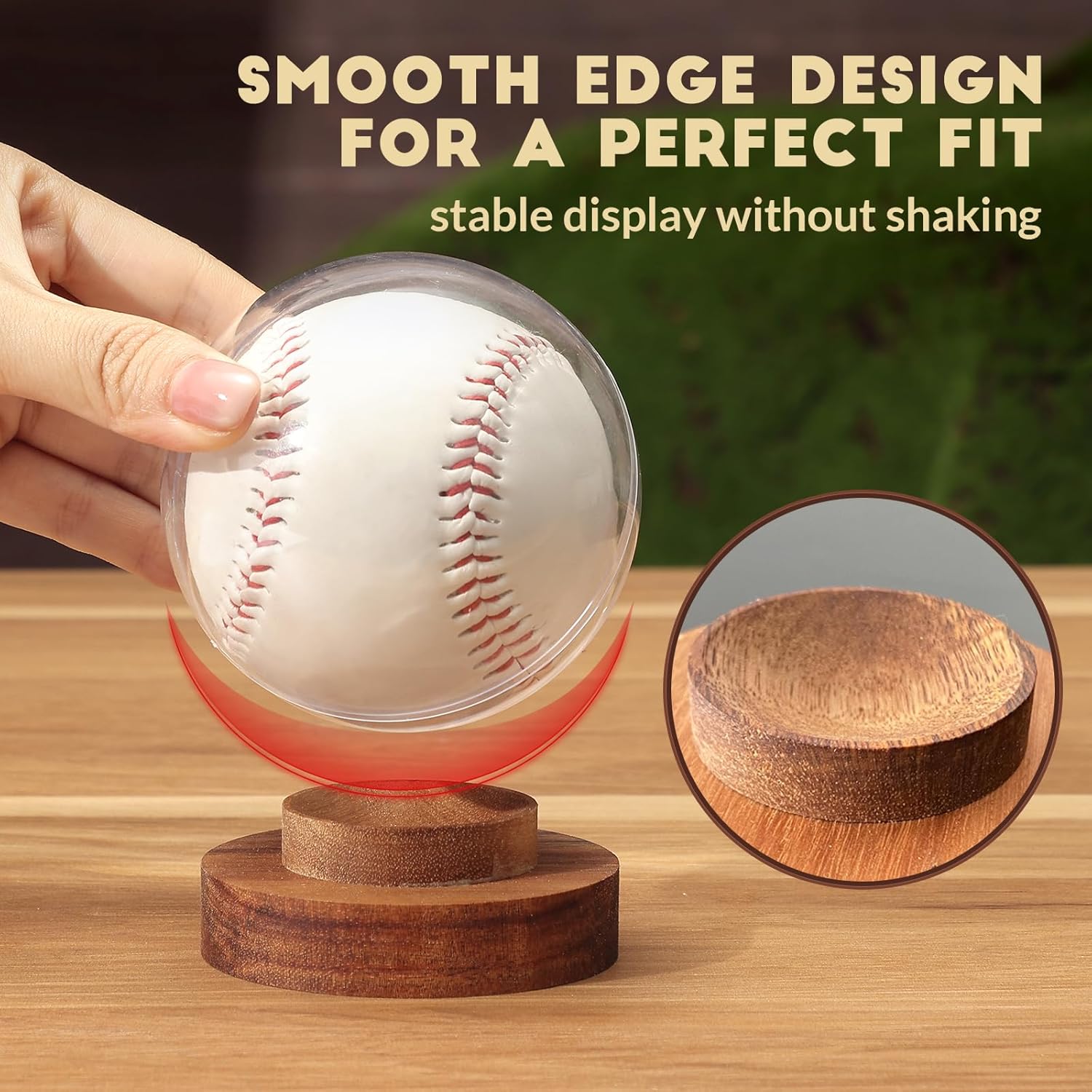 Classy wooden base for elegant display and show to friends Super clear to show the baseball and signature on the baseball High quality plastic and solid wood, firm and stable Portable and dustproof, protect your baseball from being damaged The perfect combination of wood base and round case ensures a snug fit and stability, holding the baseball puck firmly in place, creating a stunning display Also great to exhibit jewelry, gemstones, or other rounded treasures Nice package to be an ideal gift for birthdays and holidays, suitable for different decorations such as modern, farmhouse, and rustic