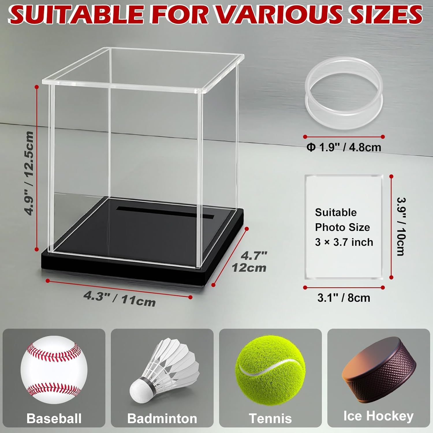 Multi-Sport Compatibility with LED Lighting: This acrylic case fits standard baseballs, hockey pucks, tennis balls, and shuttlecocks. The built-in soft three-color LED lighting enhances visibility and adds a warm visual effect in low-light settings
