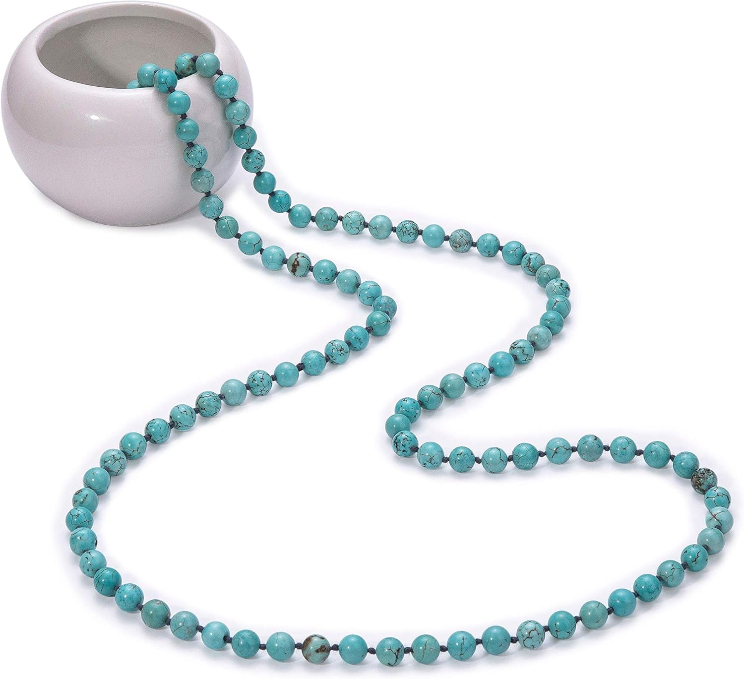 Each turquoise beads are knotted in between on a Cotton thread wire for durability and flexibility, this gives our long strand turquoise necklace great movement.