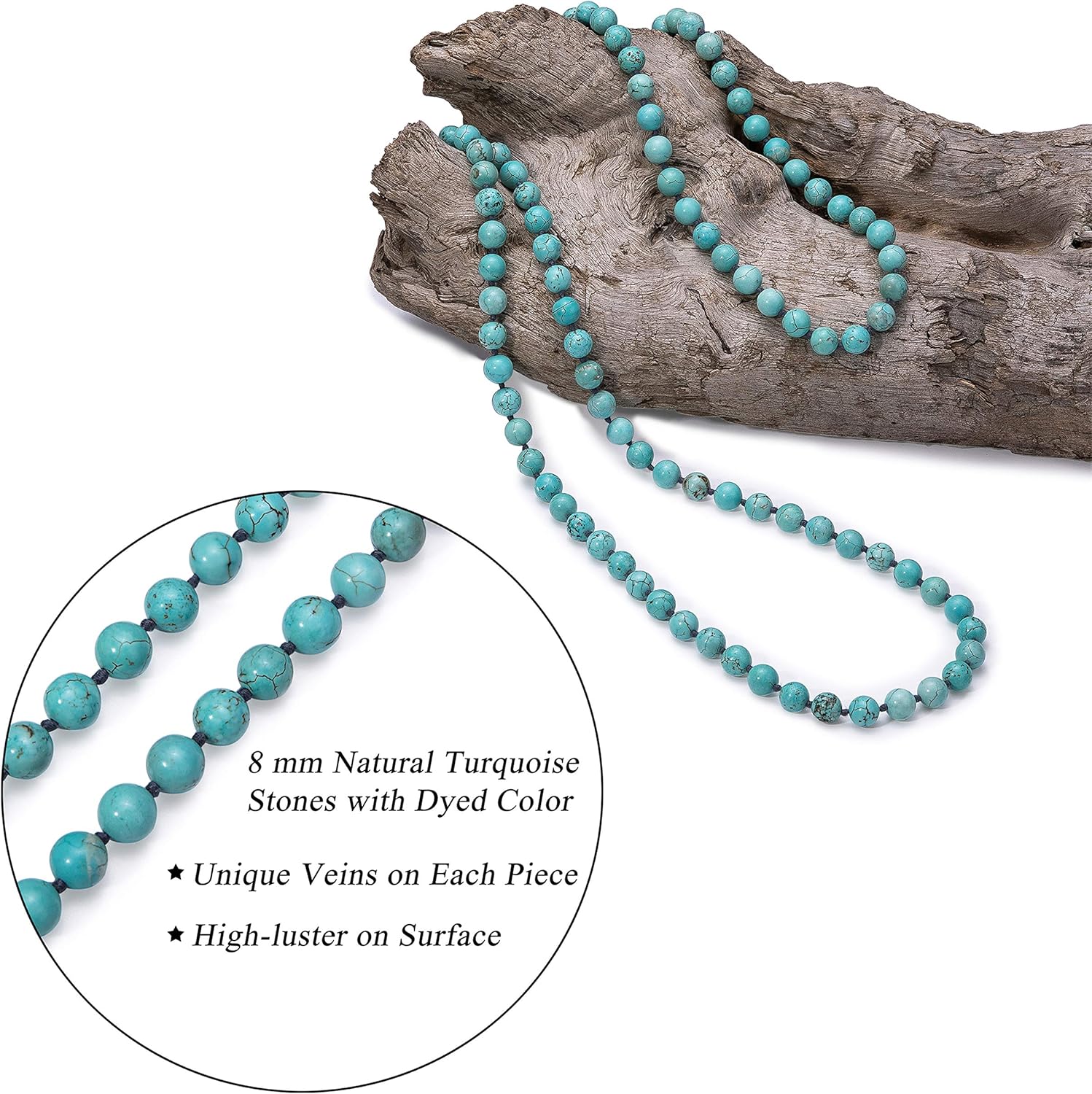 Women’s hypoallergenic necklaceMade of smooth round turquoise beadsChic, excellent quality craftsmanshipSingle ring wearing necklace & double ring wearing necklace & winding braceletPacked in a beautiful cloth bag