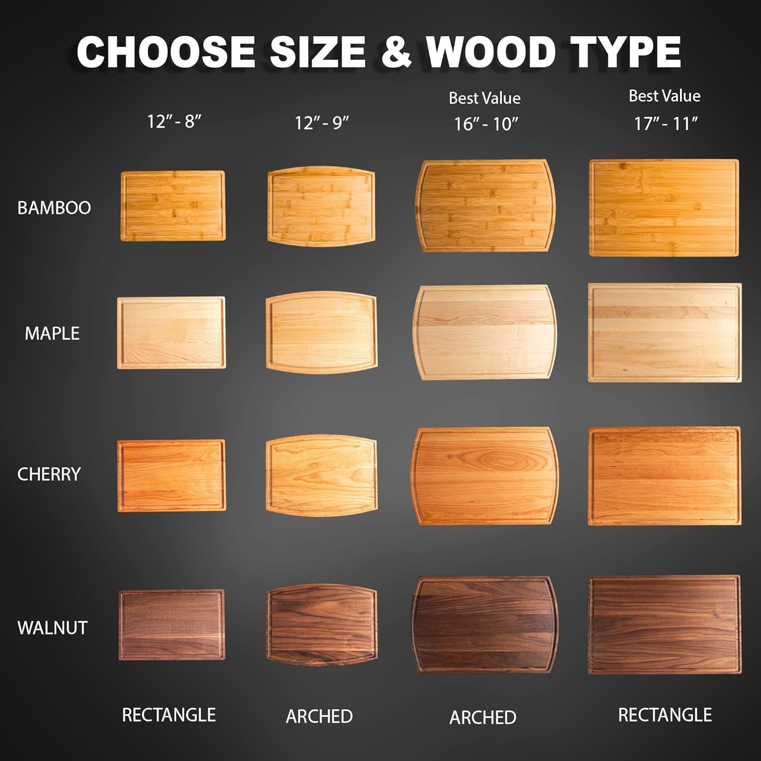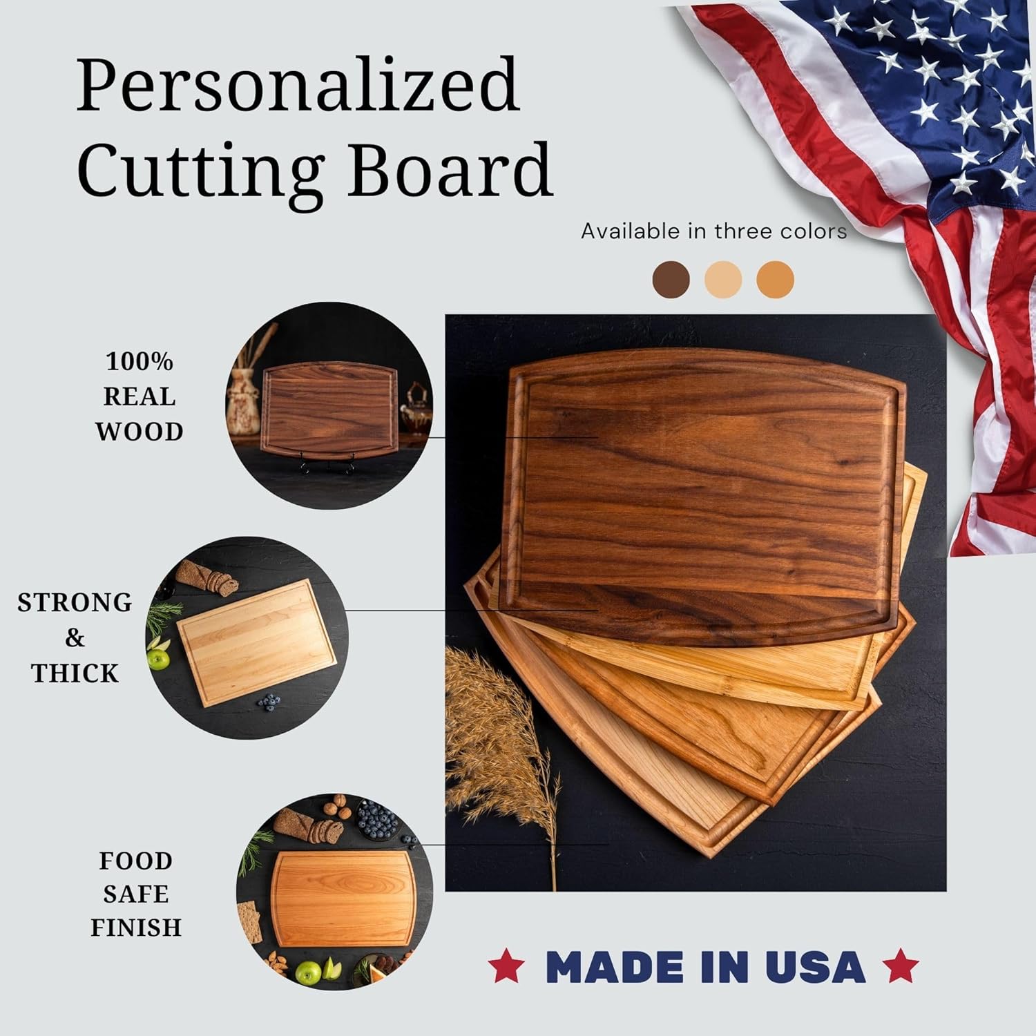 High-Quality Craftsmanship: Each cutting board is handcrafted from premium hardwood—maple, bamboo, walnut, or cherry—offering unmatched durability, rich texture, and timeless elegance.