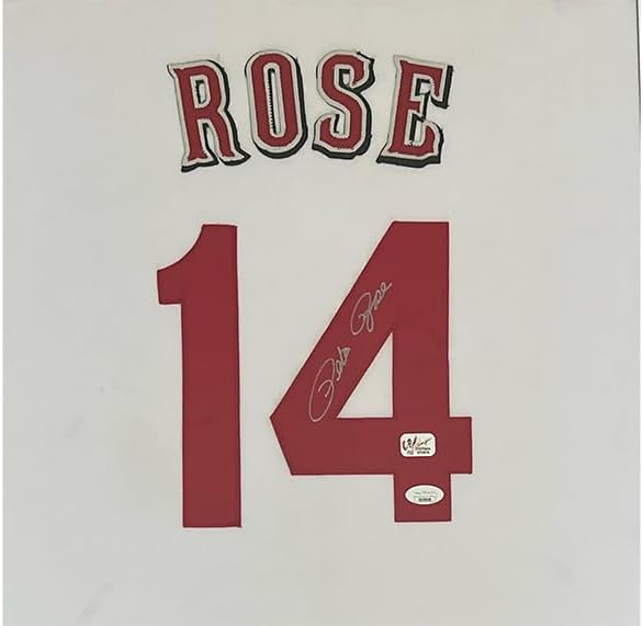 This autographed Cincinnati baseball jersey of MLB player Pete Rose. The jersey comes in a framed display measuring 32×36 inches and includes a certificate of authenticity from James Spence Authentication (JSA). It is a unique addition for any baseball fan or collector, especially those who admire Pete Rose’s achievements and contributions to the sport. The jersey is in excellent condition and will make a great addition to any collection.