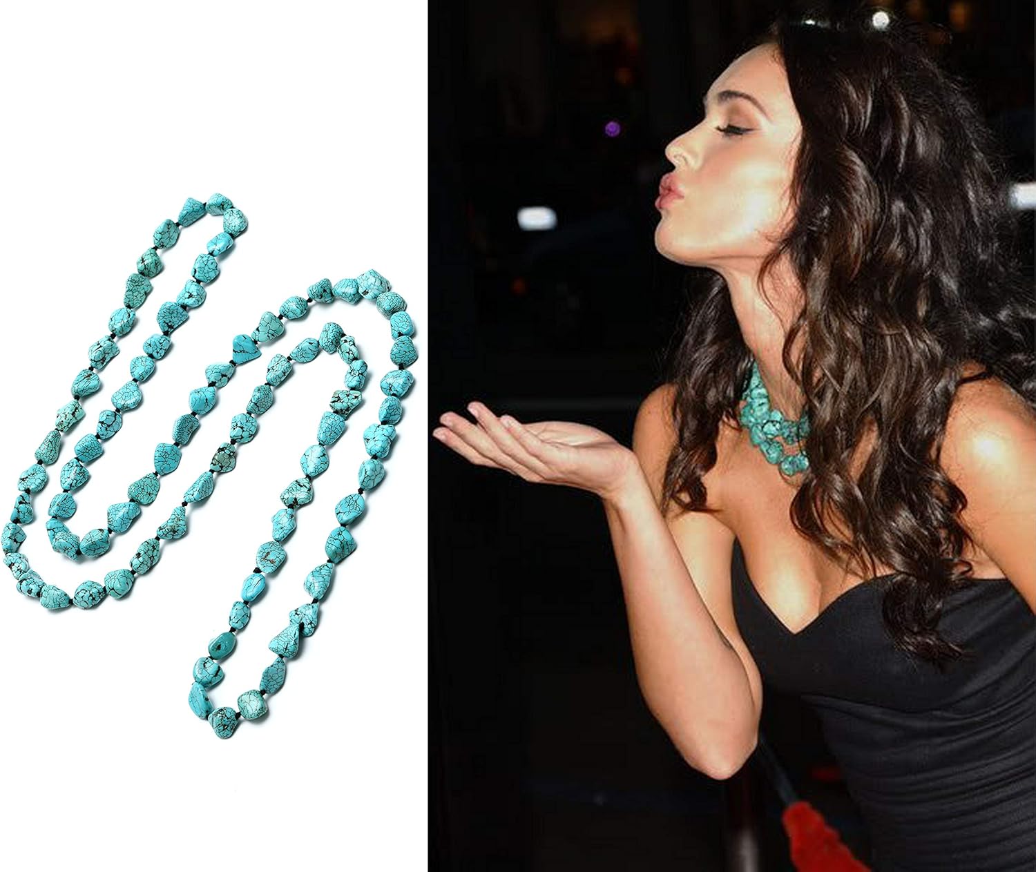 Irregular turquoise beads long strand statement necklace for women girls handmade jewelry