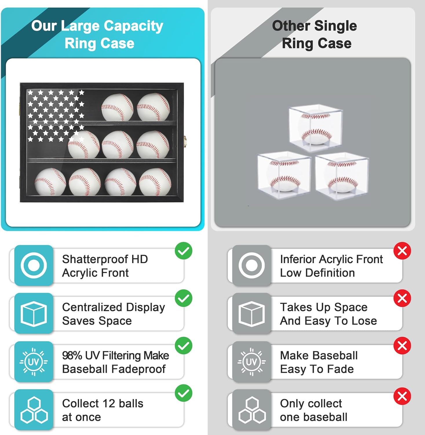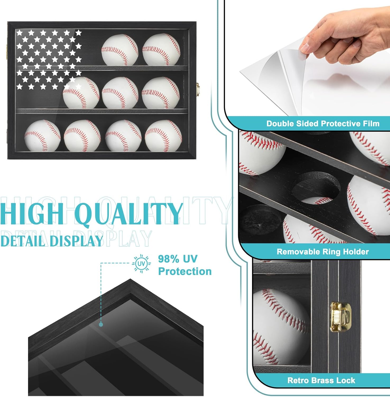 EXCEPTIONAL QUALITY: Crafted from solid hardwood with an anti-fading matte finish, this display case combines timeless elegance with rugged protection. The shatterproof glass door features UV-filtering technology to shield your valuable baseballs from harmful sunlight while keeping them completely dust-free
