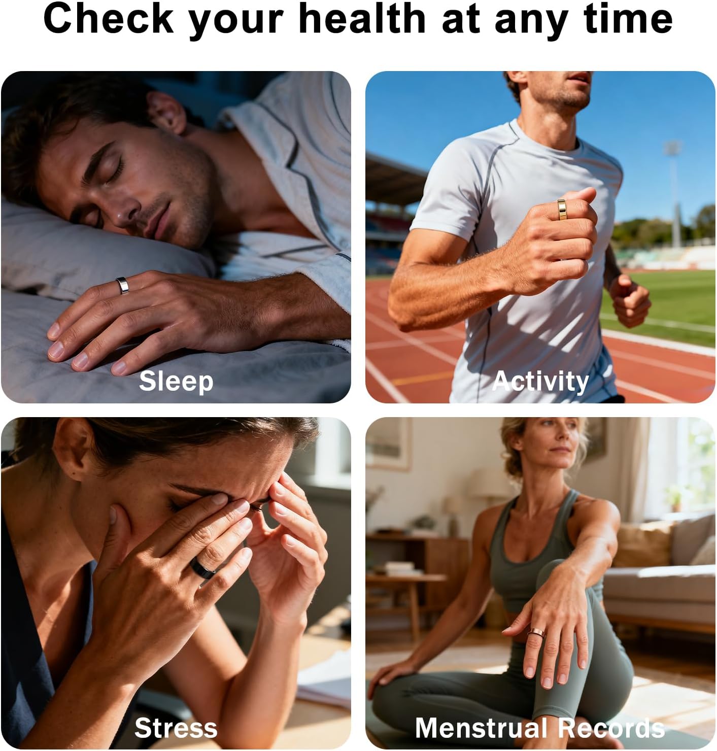 [Waterproof and Durability] As a skin-friendly wearable device, the POBOVi Ring meets the highest industry standards, from the coating technology of its titanium exterior to the waterproof treatment of its inner ring. This ensures stable performance in scenarios like swimming pools, gyms, and outdoor adventures, seamlessly integrating into your daily life