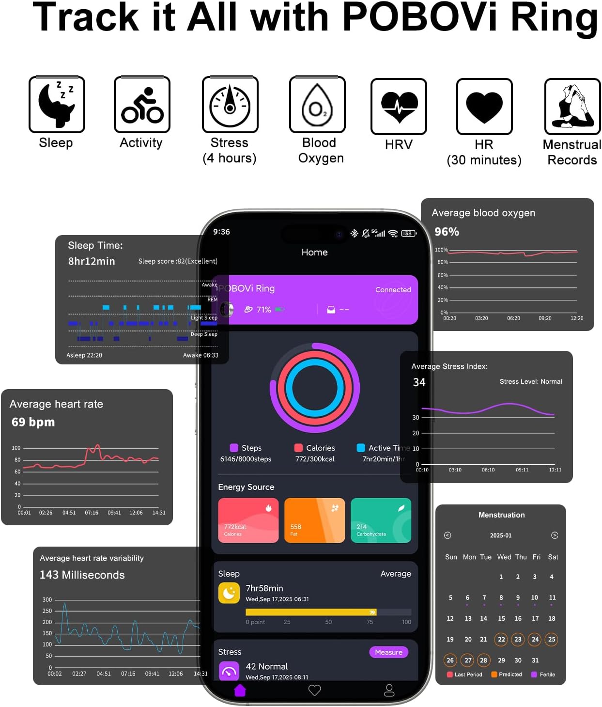 [No App Subscription Fees] The POBOVi Ring redefines the essence of smart wearable devices. After purchase, you gain lifetime free access with full functionality—no hidden costs. We reject misleading marketing tactics and are committed to delivering a more liberating and enjoyable experience for you