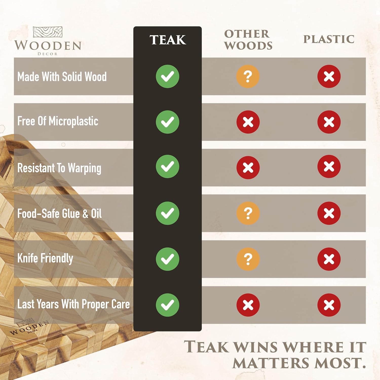 Safe, Sustainable & Microplastic-Free – Our wooden cutting board is made with food-safe, non-toxic adhesive and finished with natural oils—completely free from harmful chemicals and microplastics. Sourced responsibly from managed teak plantations, this compact & small teak cutting board supports sustainable forestry while ensuring safety and purity in your food prep.