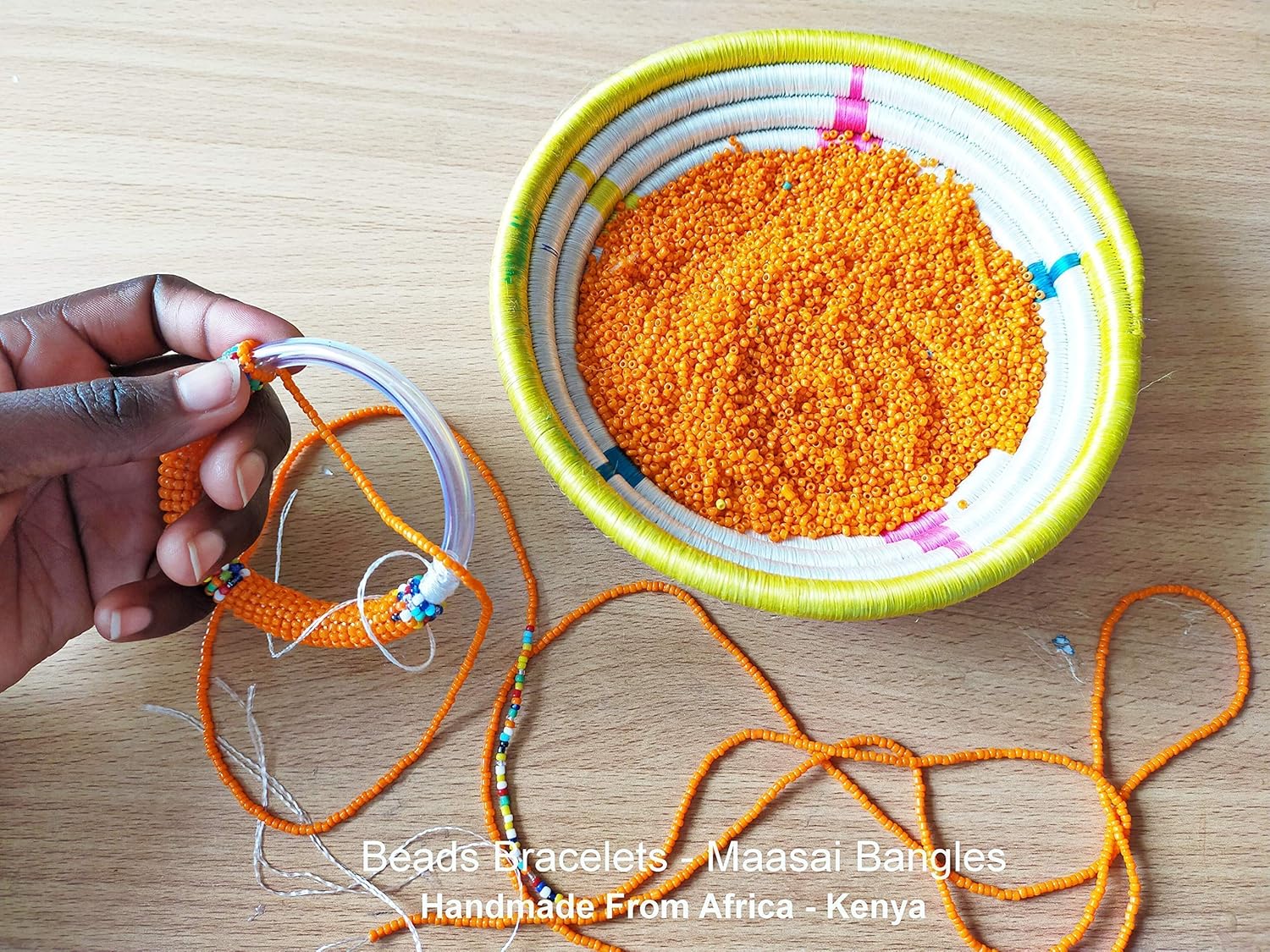 Tembo Crafts Africa – Set of 3 Handmade Bangles for Women Maasai Beaded Bracelets Boho Jewelry Gifts Orange Metallic Grey Yellow Handmade From Africa