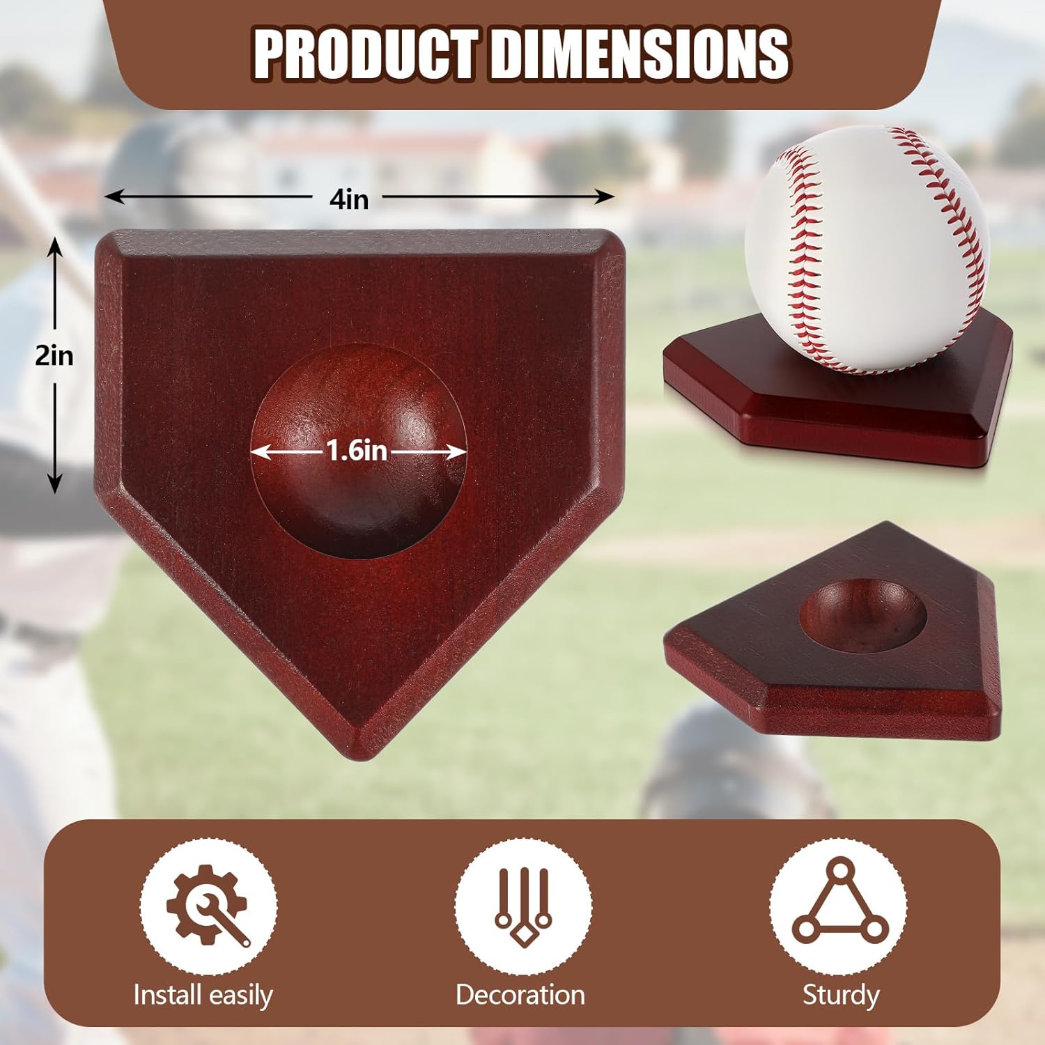 Wood Material: featuring a classic walnut colored wooden design, this wooden baseball holder display boasts a stylish pentagonal home plate shape that seamlessly blends with any home or office decor; Whether placed in your living room, study, or office, it adds a touch of natural charm to your space