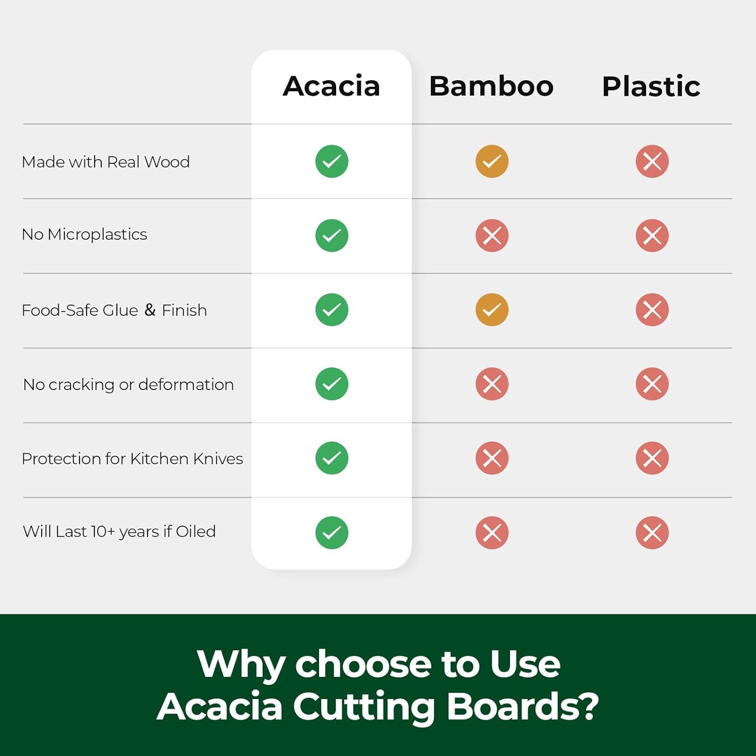This cutting board set uses a new process, triple-layer water-locking technology, to keep the water content of the cutting board at 13%, making it more durable and less likely to crack and warp.