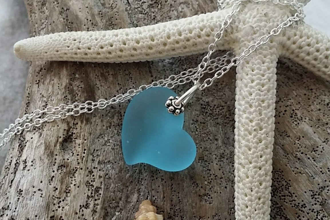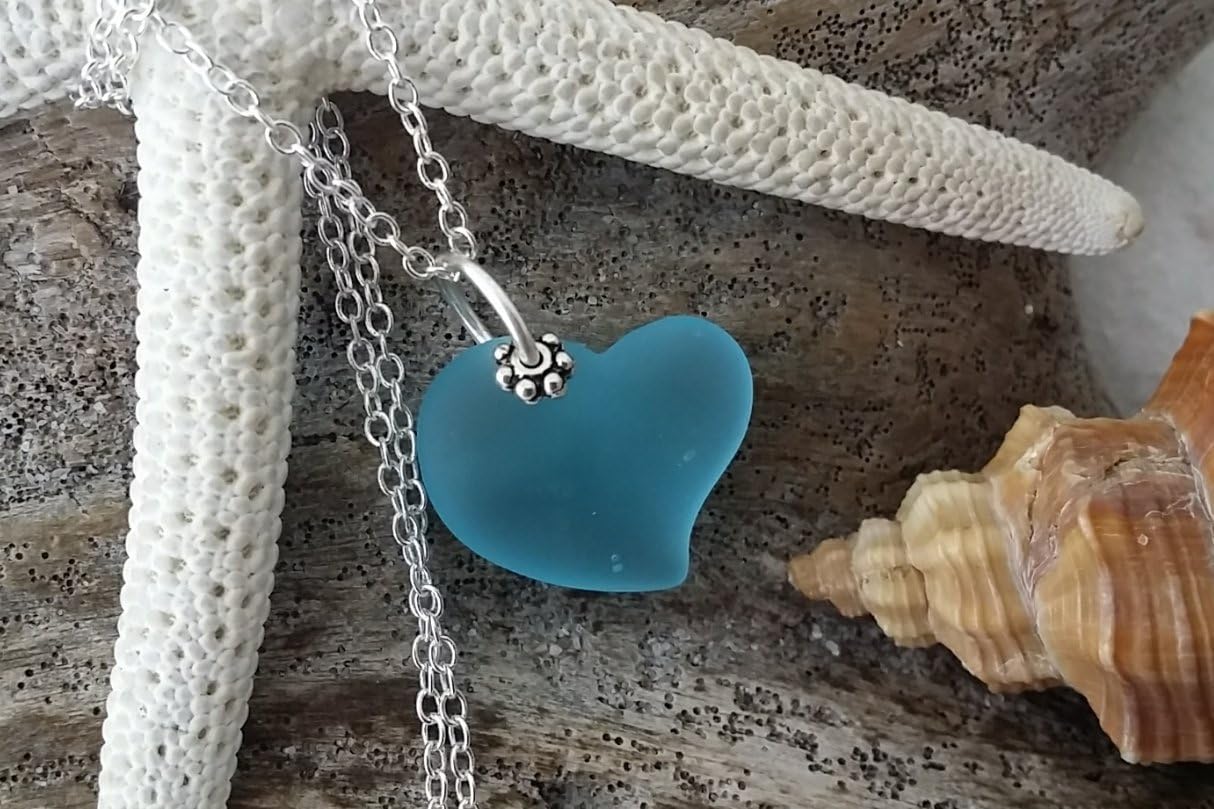 Yinahawaii Handmade Sea Glass Necklace, Hawaiian Jewelry For Women, Minimalist Heart Necklace, Sea Glass Jewelry Birthday Gift For Women