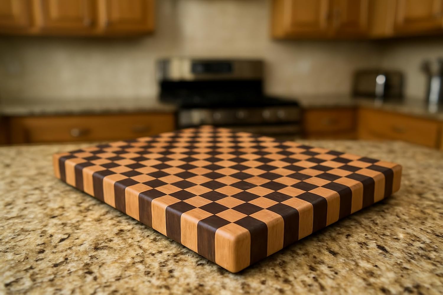 Handmade End-Grain Cutting Board (Maple & Walnut) by Johannsen’s Wood Products Experience craftsmanship that honors tradition. Each Johannsen’s Wood Products cutting board is handmade in the USA from premium, locally sourced hardwoods including maple, walnut, and cherry carefully selected for durability, beauty, and performance. Our end-grain construction isn’t just stunning, it’s functional! The unique checkerboard end-grain pattern is gentle on knife edges, self-healing, and built to last a lifetime. Every board is sanded silky smooth, finished with a premium food-safe mineral oil and beeswax blend, and ready for years of kitchen service. Perfect as a regular cutting board, chef’s board, serving platter, butchers block, or gift for food lovers, each Johannsen’s board is a one-of-a-kind piece that reflects the natural beauty of American hardwoods and the care of true craftsmanship.