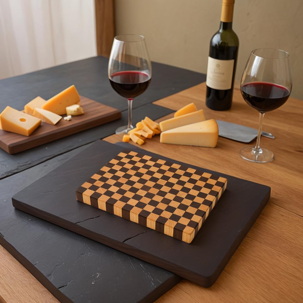 PREMIUM MATERIALS: Handcrafted from hand selected maple and walnut hardwoods in an elegant zebra-checkered end-grain pattern for superior durability