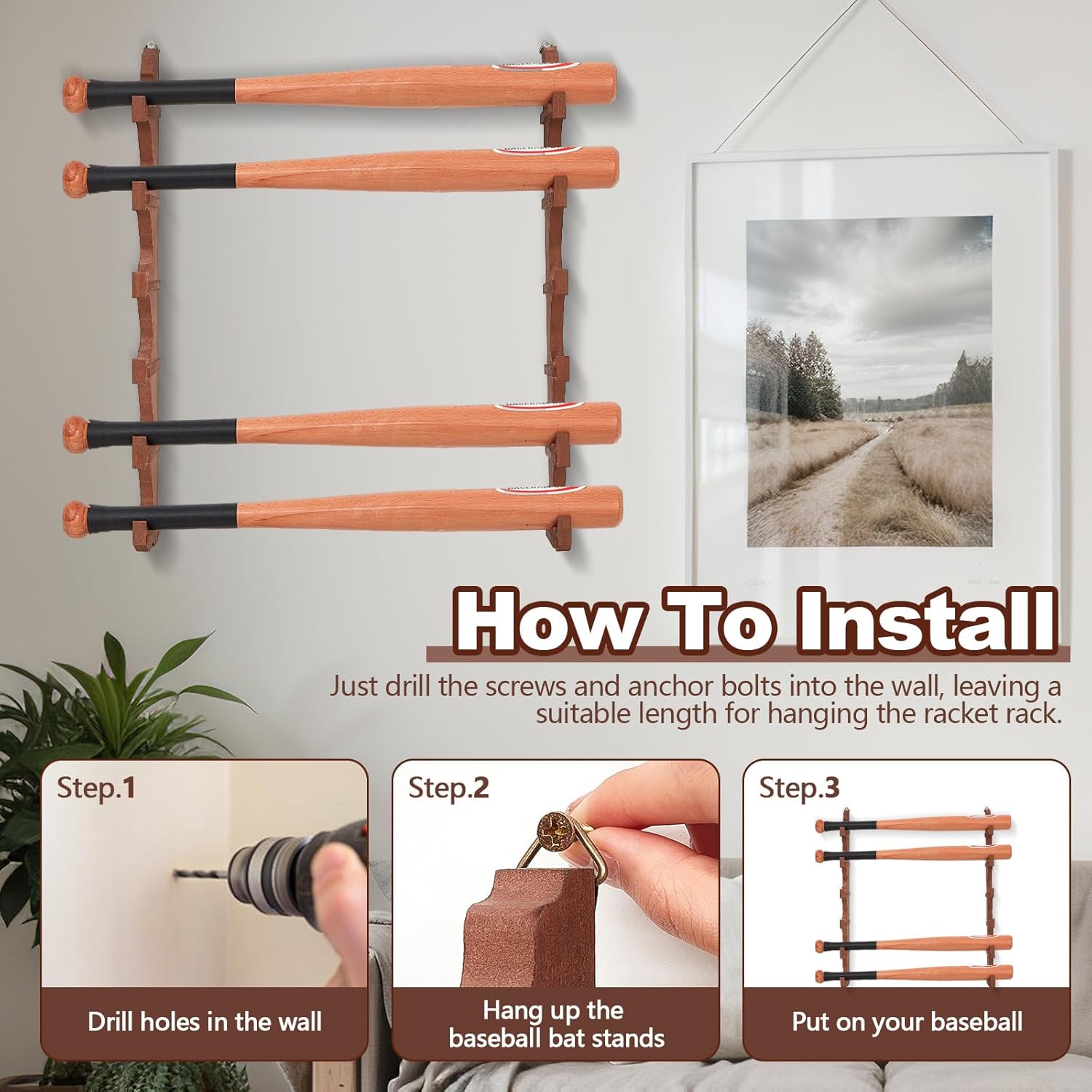 Size That Matters: unfold an arena of display opportunities with this wooden baseball bat display rack as compact as they are lightweight; Properly aligned with the displayed picture, the size of this rack puts efficiency and elegance in harmony; Wall mounted design can save your space, and will not occupy too much place, helping you store things
