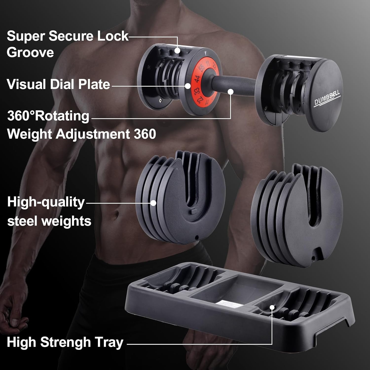 【Space-Saving Design】Experience the convenience of five adjustable weights in a single set. The compact design of our adjustable dumbbells offers the equivalent of a 5-set weight training experience. Say goodbye to clutter, as one adjustable dumbbell suffices for the entire family’s needs. With an included storage tray, our design not only saves space but also ensures hassle-free storage. No need for a rack – these dumbbells fit effortlessly in any corner of your home.